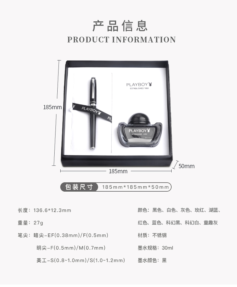 PLAYBOY/花花公子钢笔成人商务办公男女生学生用练字书法书写美工礼盒套装送礼生日礼物送老师礼品定制刻字