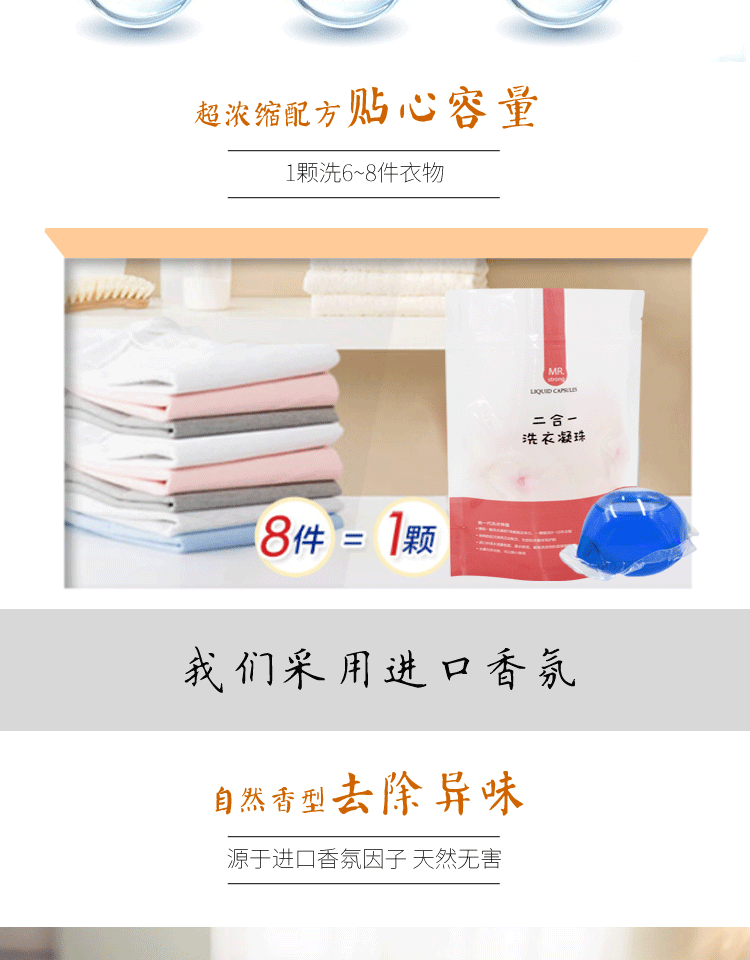【30颗,一颗4毛钱】一颗相当于普通洗衣液8倍浓缩力,天然倍净,除菌除螨,去渍去污方便,母婴可用。高效洗衣,精准解决衣物清洁难题,全家衣物够量洗!