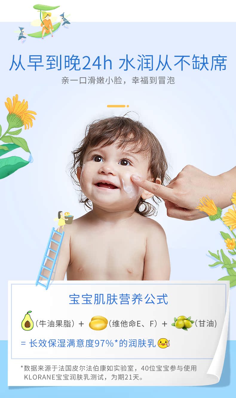 klorane康如金盏花面霜秋冬儿童保湿护肤霜宝宝身体乳婴儿润肤乳