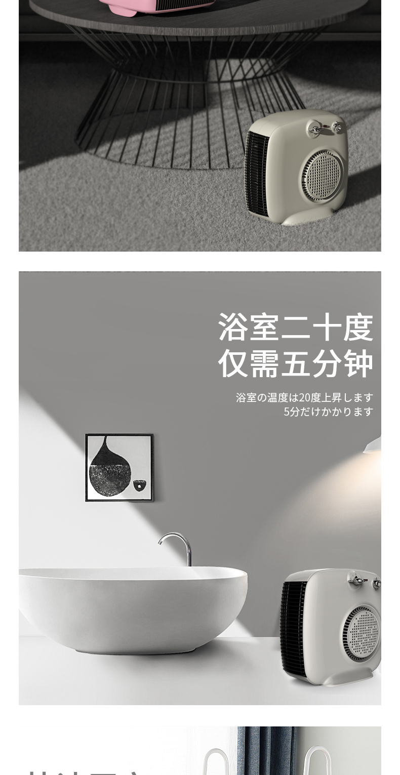 内置采用2000W大功率,3挡可调,立卧两用,过热保护,舒适自然风,办公室、卧室、宿舍、浴室等多场景都可用!