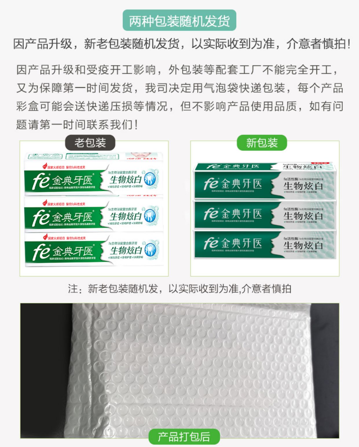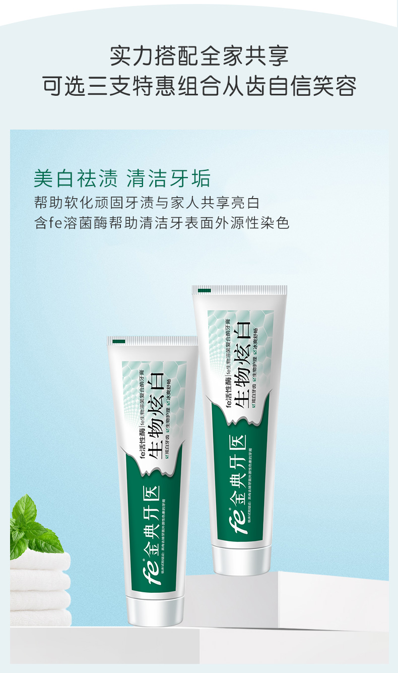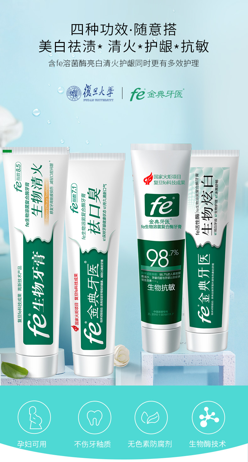 fe金典牙膏牙医生物酶美白益生菌去黄去口臭清新护牙龈家庭实惠装