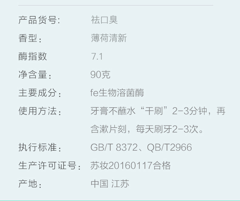 高品质牙膏,fe清新,口气酶fe指数9.3,防治牙结石,生物溶菌技术,解决口腔各种问题,品牌值得信赖,美白牙齿!【赠运费险】