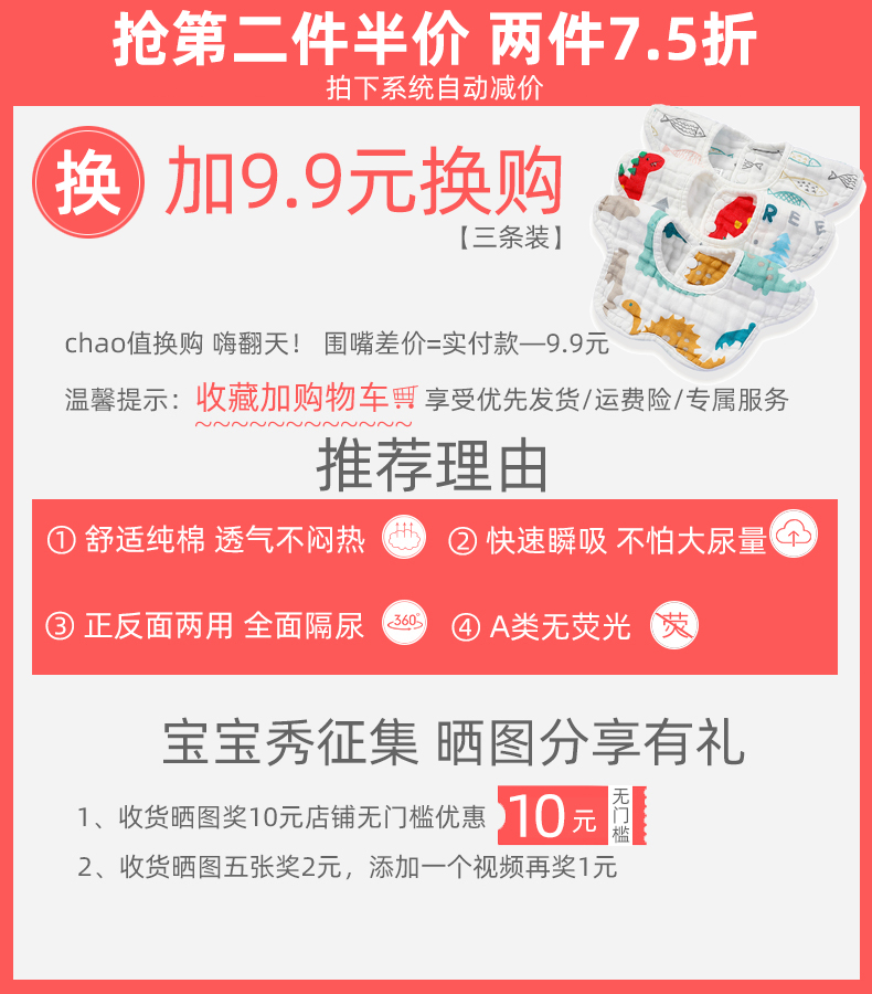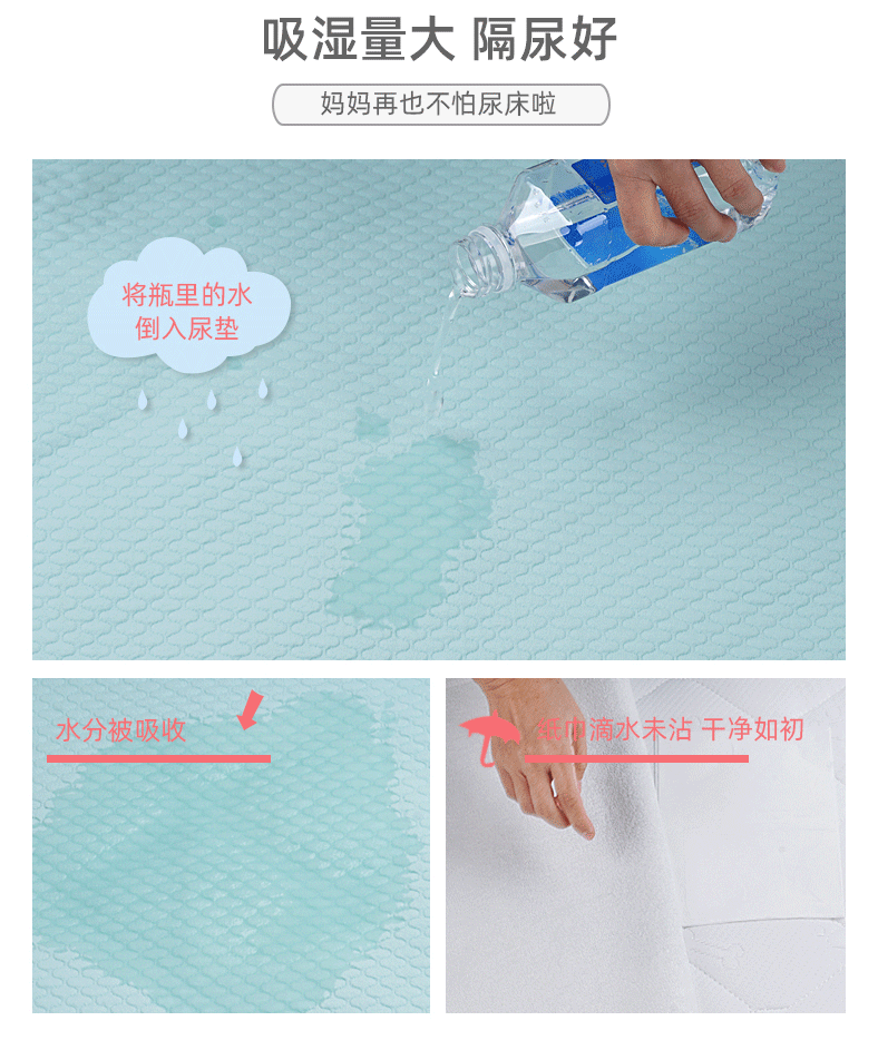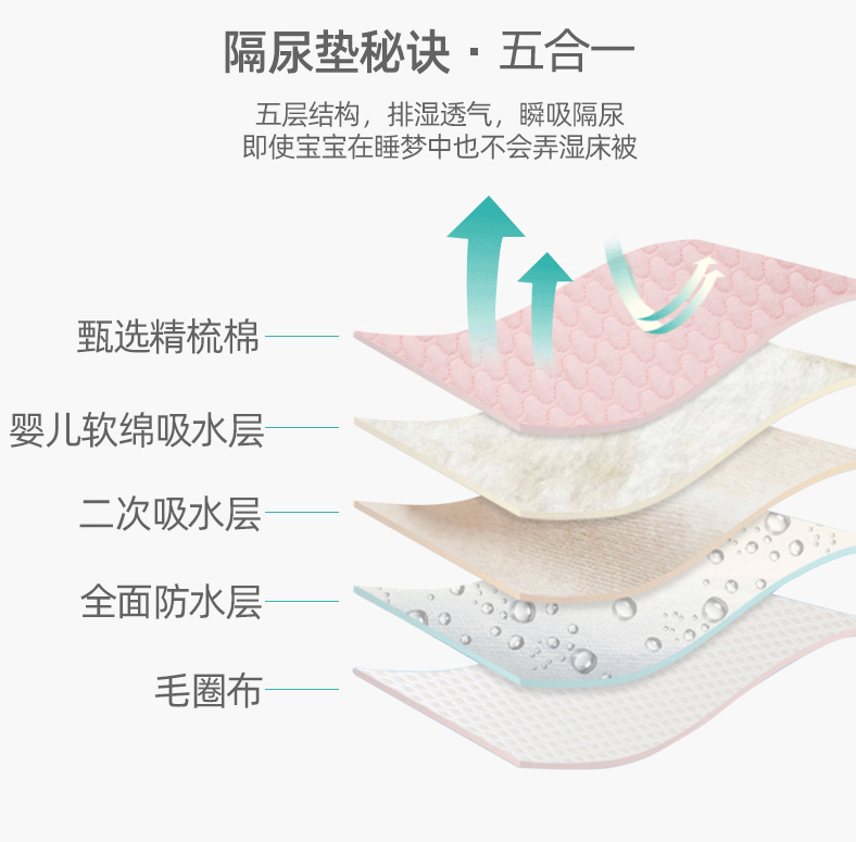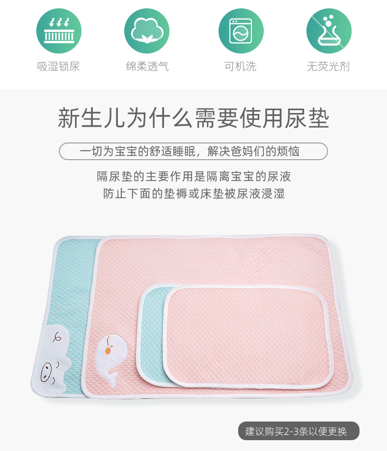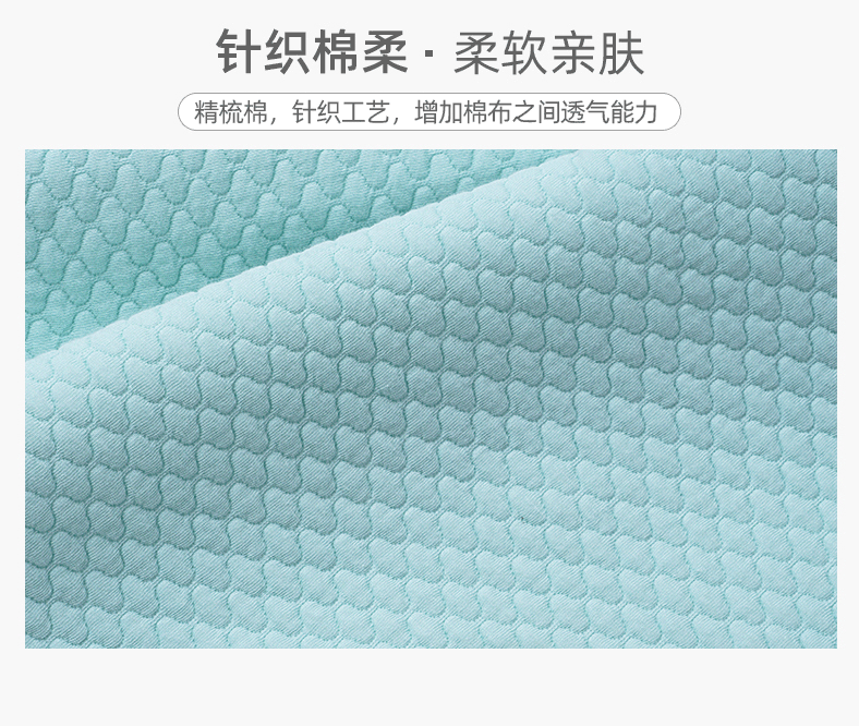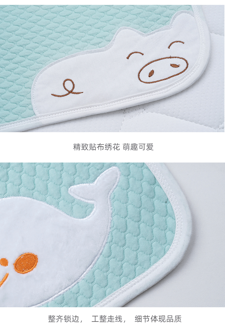 优质精梳纯棉,层层棉纱,层层透气,更舒爽透气,吸水又防水,柔软舒适。反面防滑材质,随意翻身不乱跑!不掉色不起球,无荧光剂。