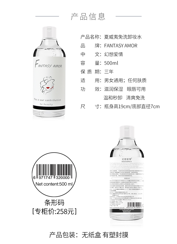 Fantasy amor/幻想爱情免洗卸妆水液膏眼唇脸部温和清洁无刺激女