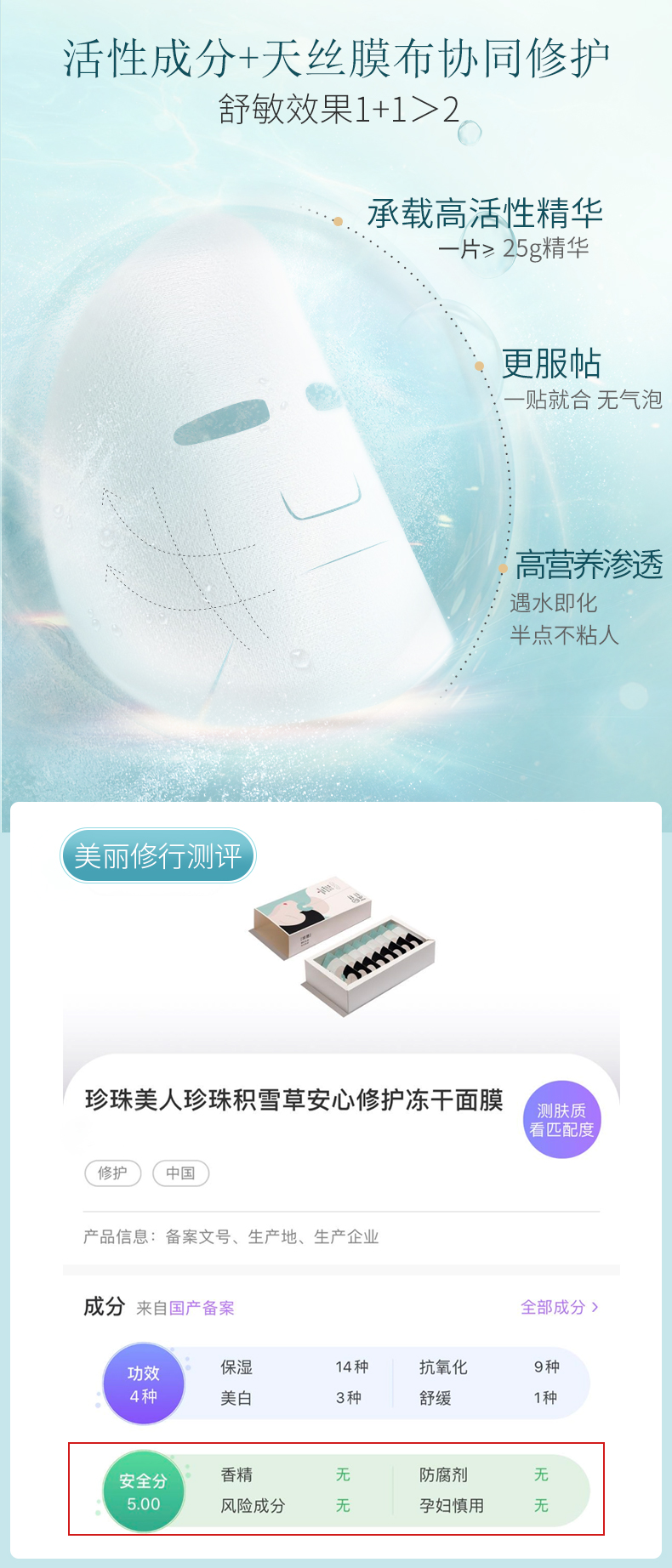 【珍珠美人】积雪草安心修护保湿面膜,全新优化积雪草提取工艺,更大程度保留蛋白质等成分,深度补水,让你的肌肤喝饱水!!整天美哒哒的!~爱自己就用积雪草安心面膜!