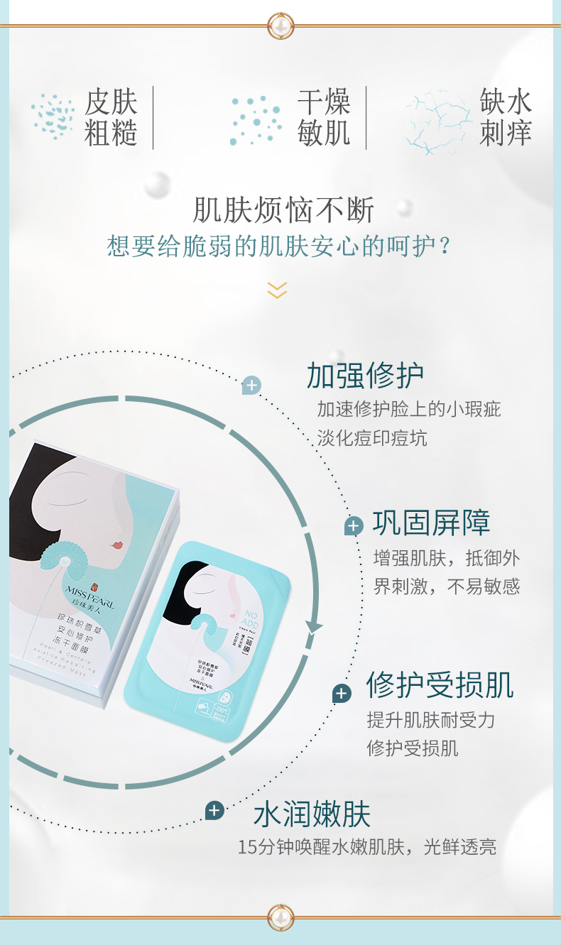 珍珠美人珍珠积雪草安心修护保湿补水滋润冻干面膜一生有你联名