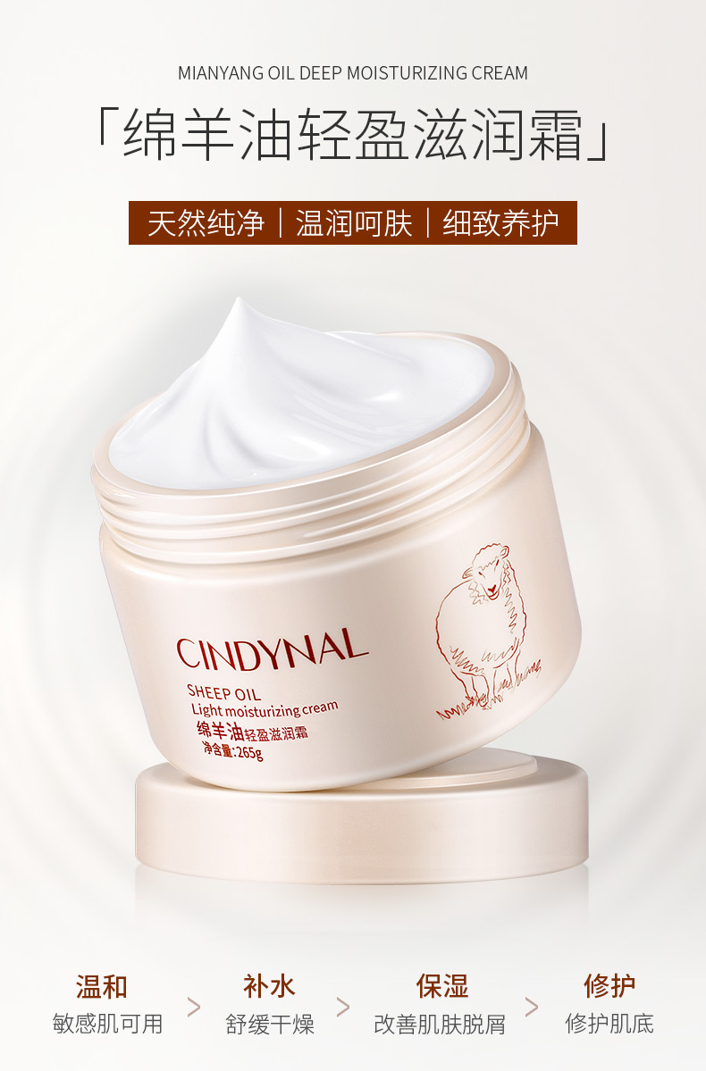 全身可用绵羊油面霜,一大罐265g,深层补水滋润保湿不油腻,绵羊油天然瑰宝一美利诺羊毛脂纯净羊毛脂藏着自然的“澳”秘,1滴绵羊油≈泡一次羊奶浴!四季使用,全家适用!