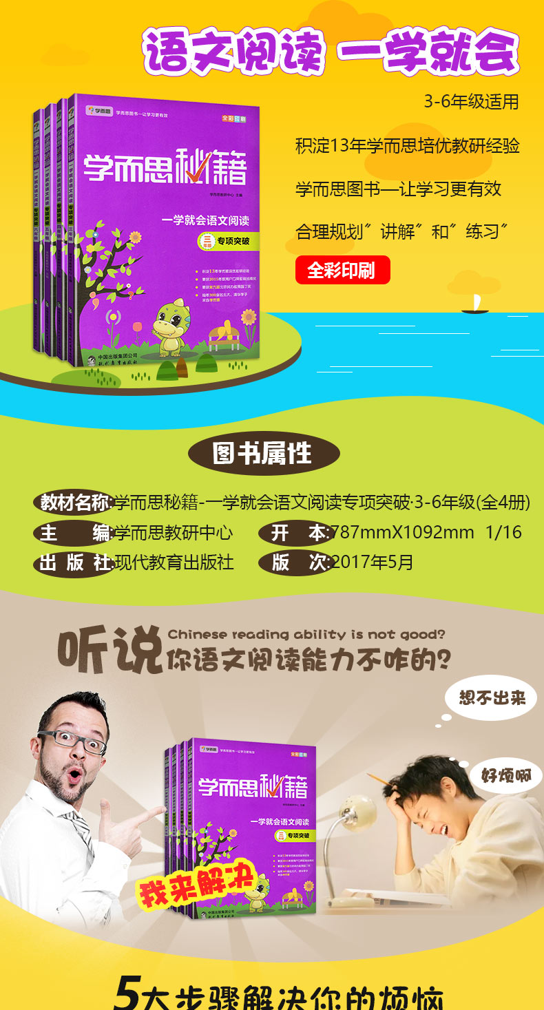 【天猫图书专营店】官方授权!配套视频讲解,全彩印刷,环保纸张,适合3-6年级,分5步培养阅读能力,让孩子学习更有效,直击得分关键点,语文阅读一学就会!【赠运费险】