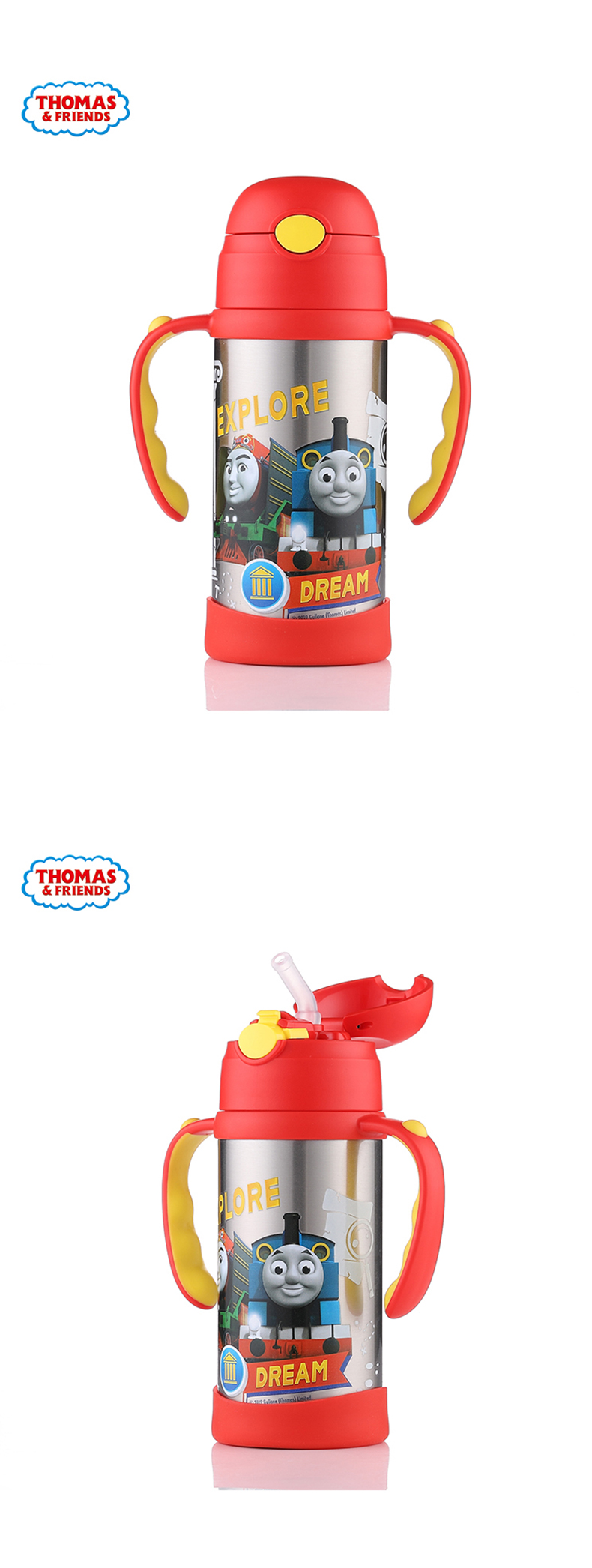 【托马斯和朋友】2019新款儿童不锈钢保温杯!新颖设计,背带及手柄两用!医用级316不锈钢内胆,24小时保温!倒置防漏设计,两用保温杯,方便携带,托马斯图案,宝宝的爱!!