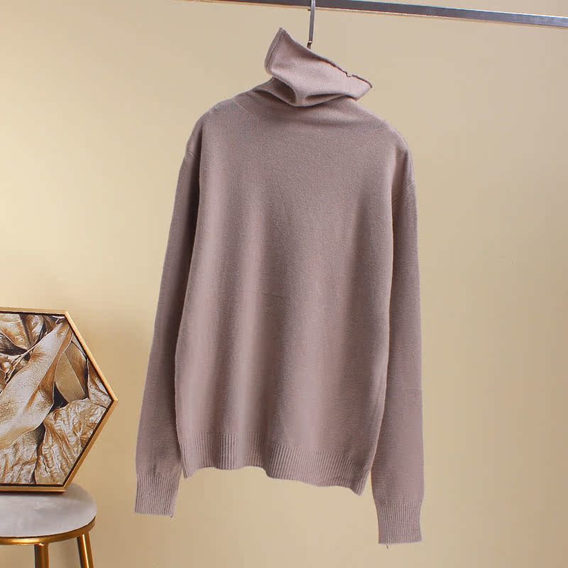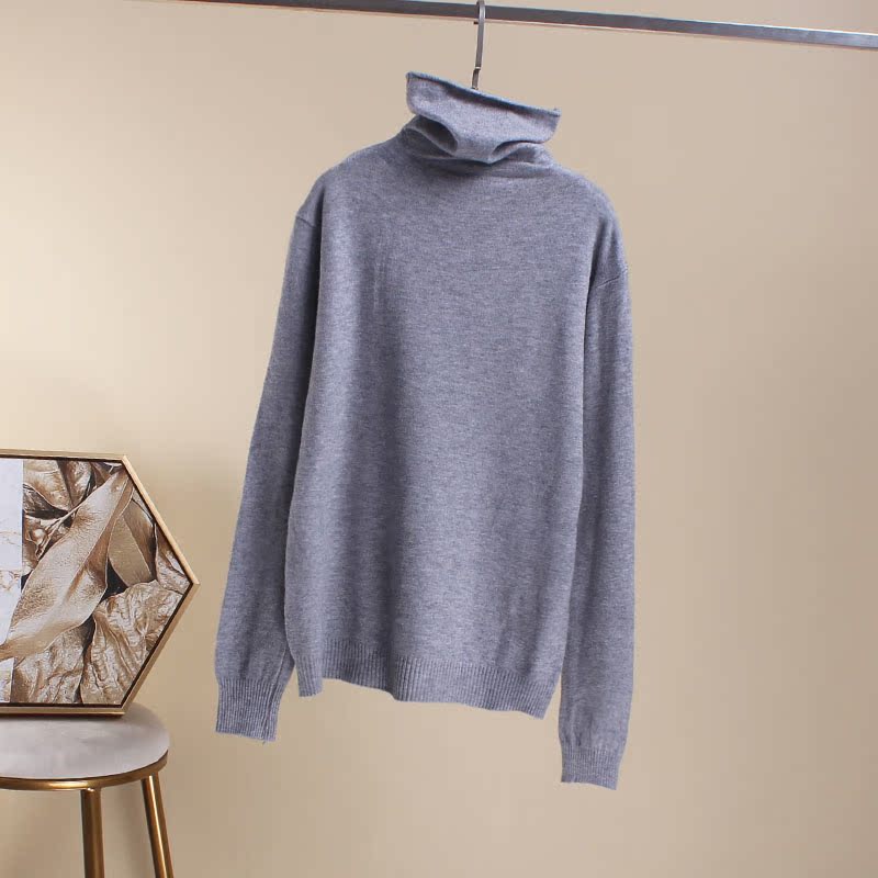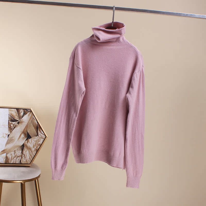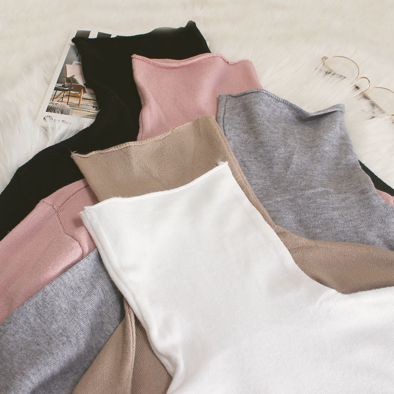 堆堆领针织打底衫女内搭长袖秋冬季2019新款加肥加大码打底毛衣女