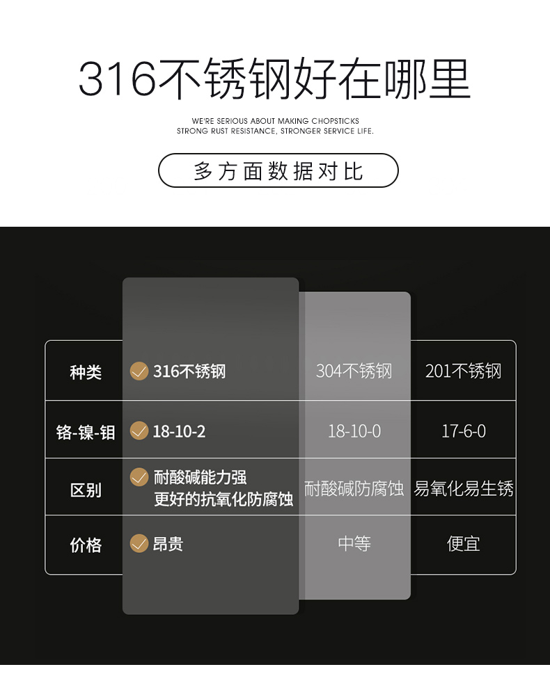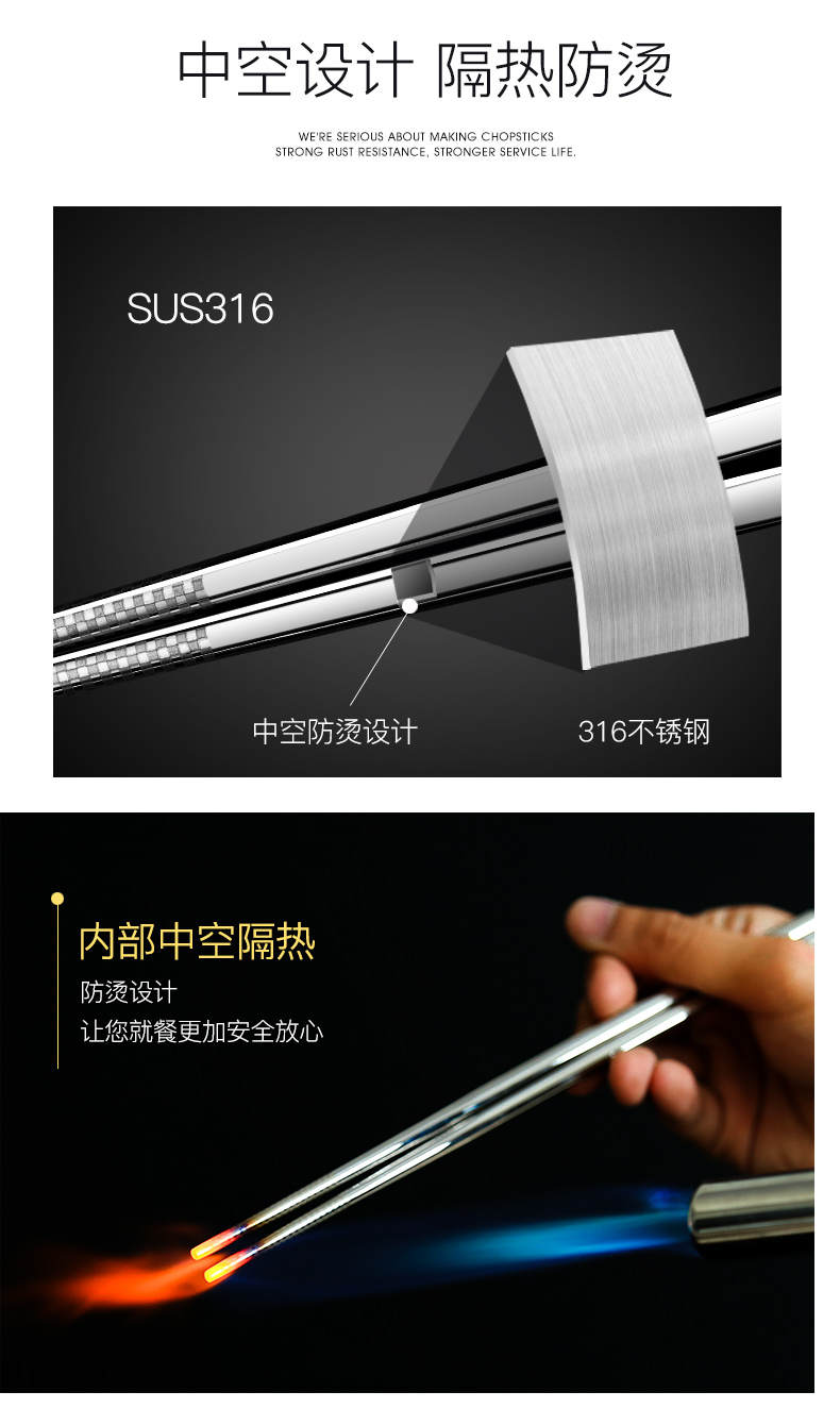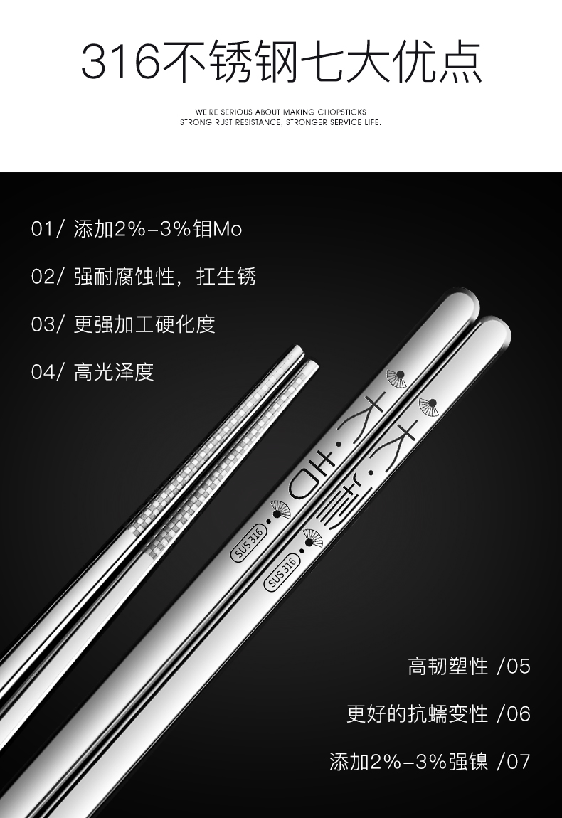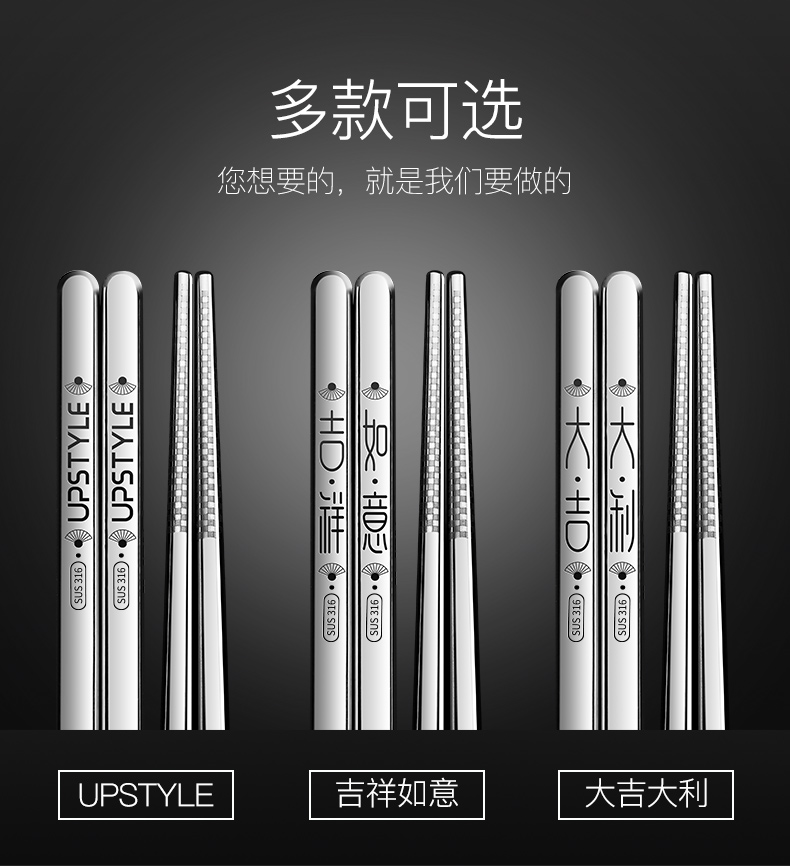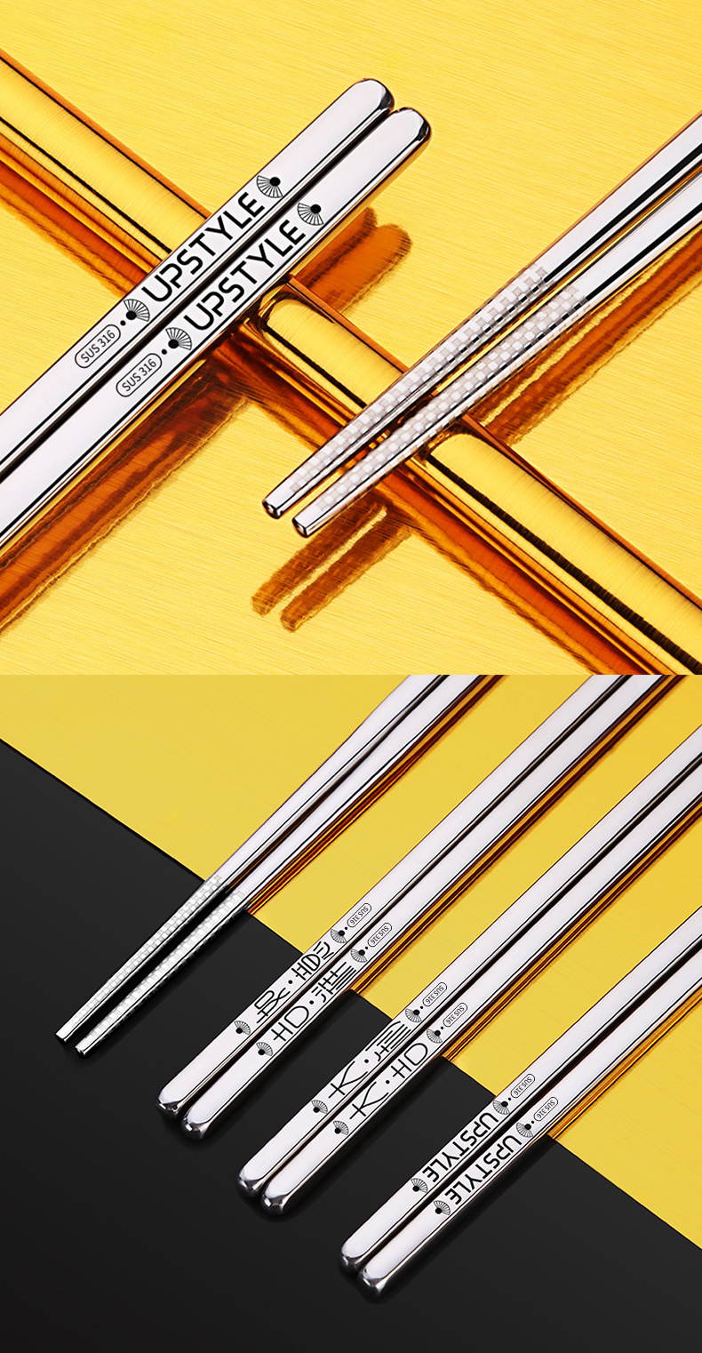 家用316不锈钢筷子304防滑防潮防霉耐高温日式合金银铁长快子套装
