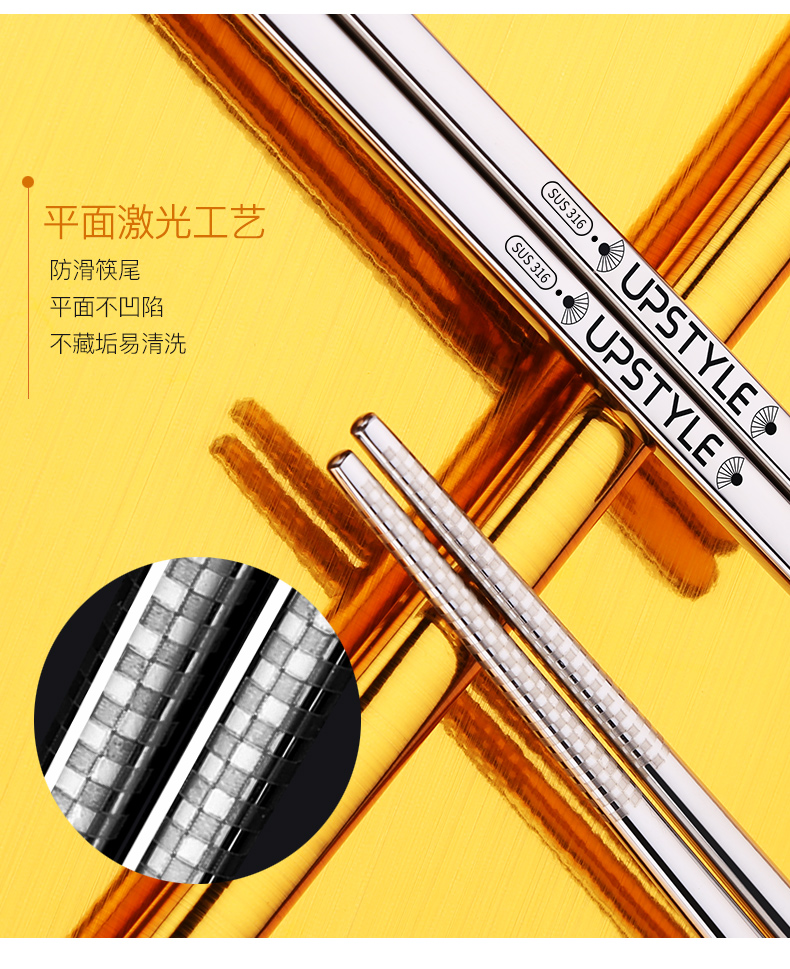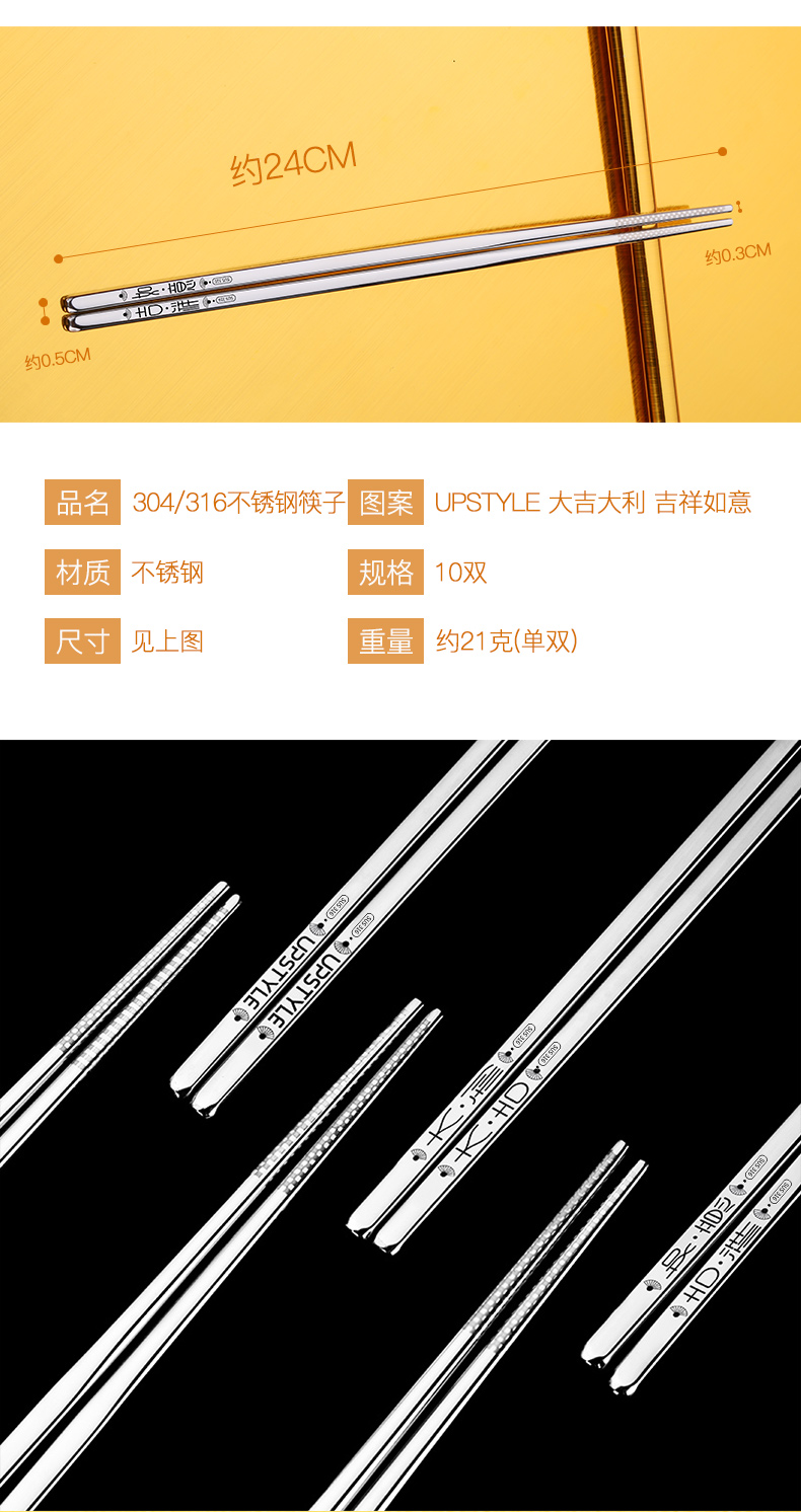 【10双装】悠家良品,精选优质食品级316不锈钢,德国工艺,激光镭射防滑设计,头尾一体成型,镜面抛光亮如镜,不藏污,不发霉可消毒易清洗,隔热防烫,选好筷,选健康,年末大促销,速度抢!