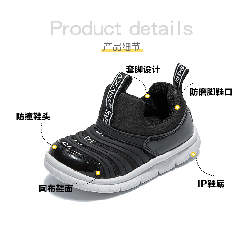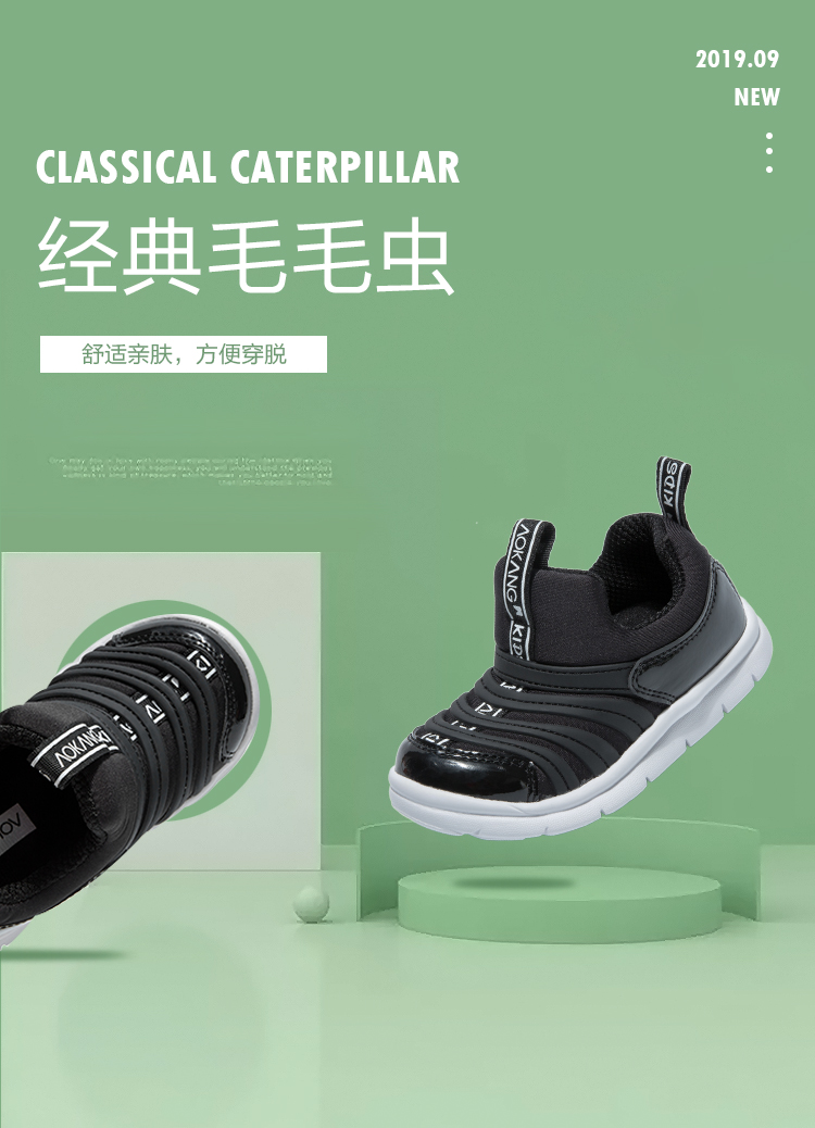 奥康童鞋儿童毛毛虫男童宝宝鞋子秋款2019新款女童软底运动一脚蹬