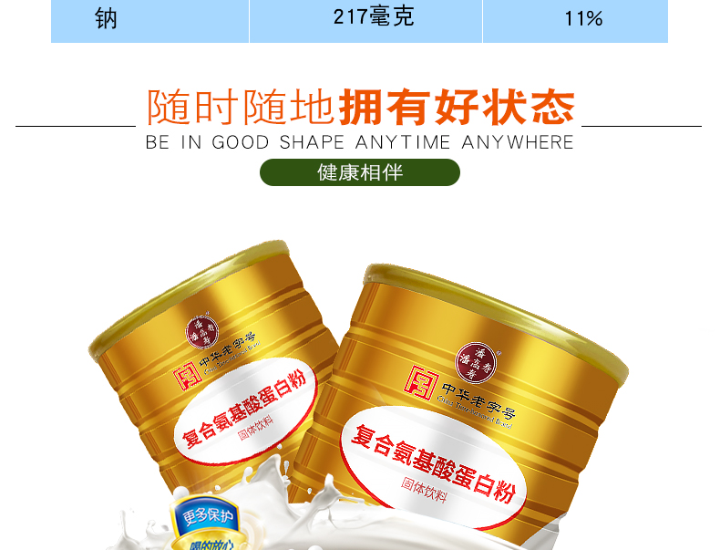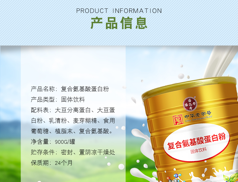 潘高寿复合氨基酸蛋白粉固体饮料,蛋白质是生命的源泉,是人体生命活动中必须的重要物质,有助于构成或修复人体组织,是组织形成和生长的主要营养素。