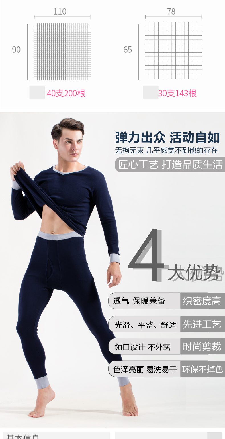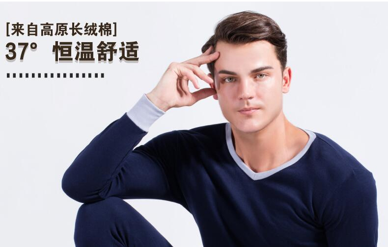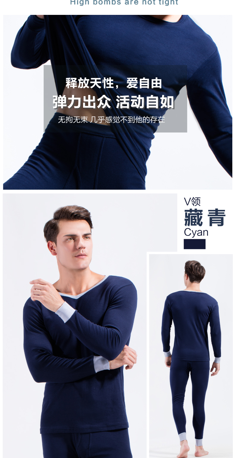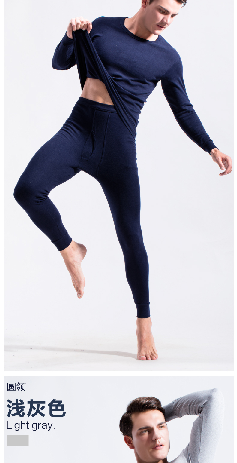 帕兰朵保暖内衣男士薄款青年修身秋冬季打底棉毛衫秋衣秋裤男套装