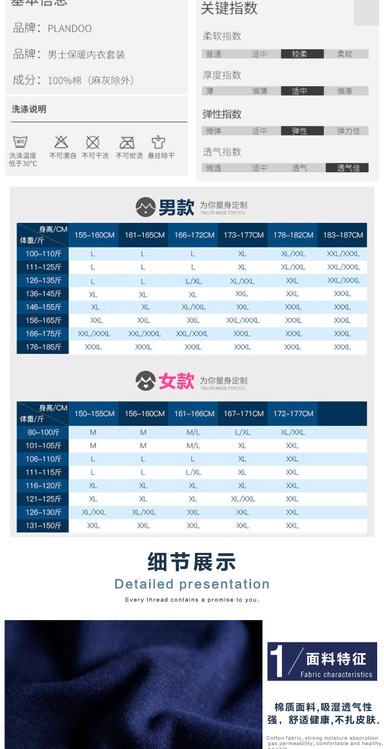 【帕兰朵专注内衣16年,纯棉内衣套装】帕兰朵保暖内衣修身打底套装。来自高原长绒棉,恒温舒适,保暖与透气兼得,干爽透气,锁住热量。抗磨性强,弹性持久,质量值得信赖~【赠运费险】