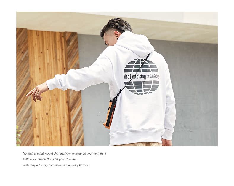 WEX卫衣男潮嘻哈宽松连帽卫衣潮ins港风秋装上衣韩版潮流学生外衣