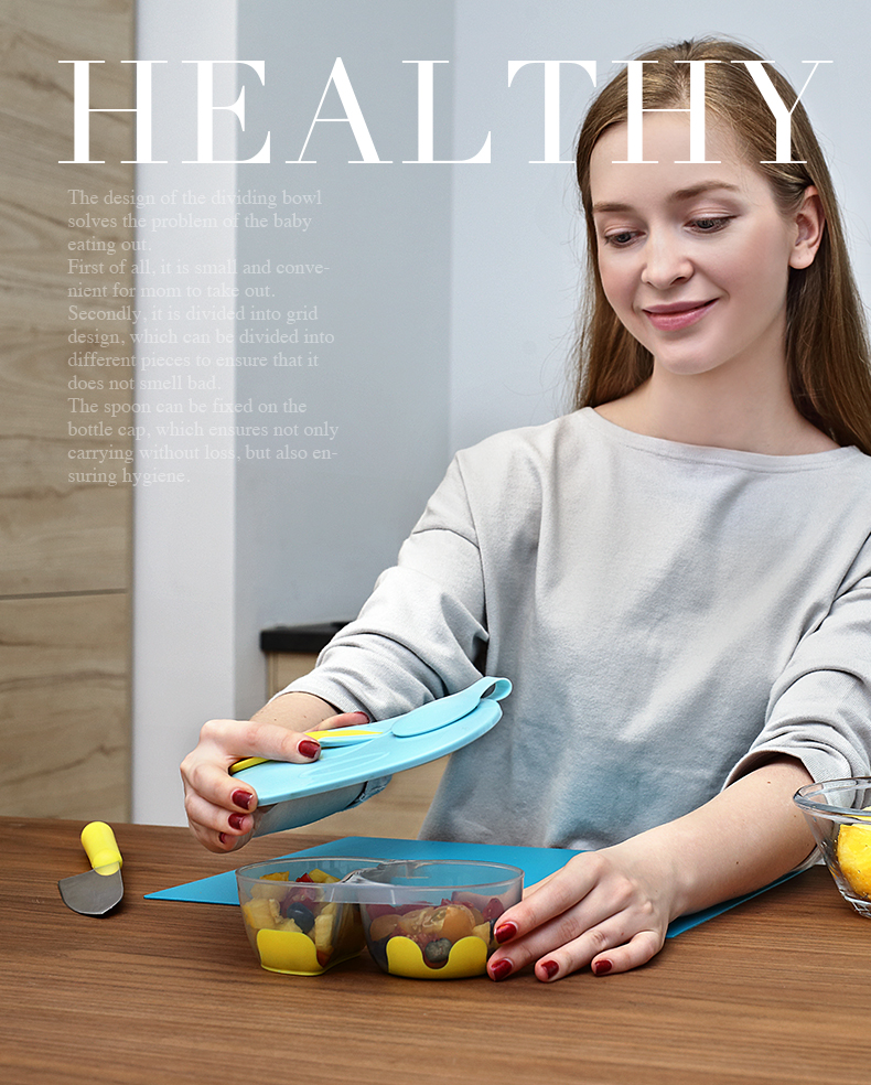 可可萌婴儿分隔碗碗勺套装儿童餐具宝宝吃饭碗外出防摔便携辅食碗