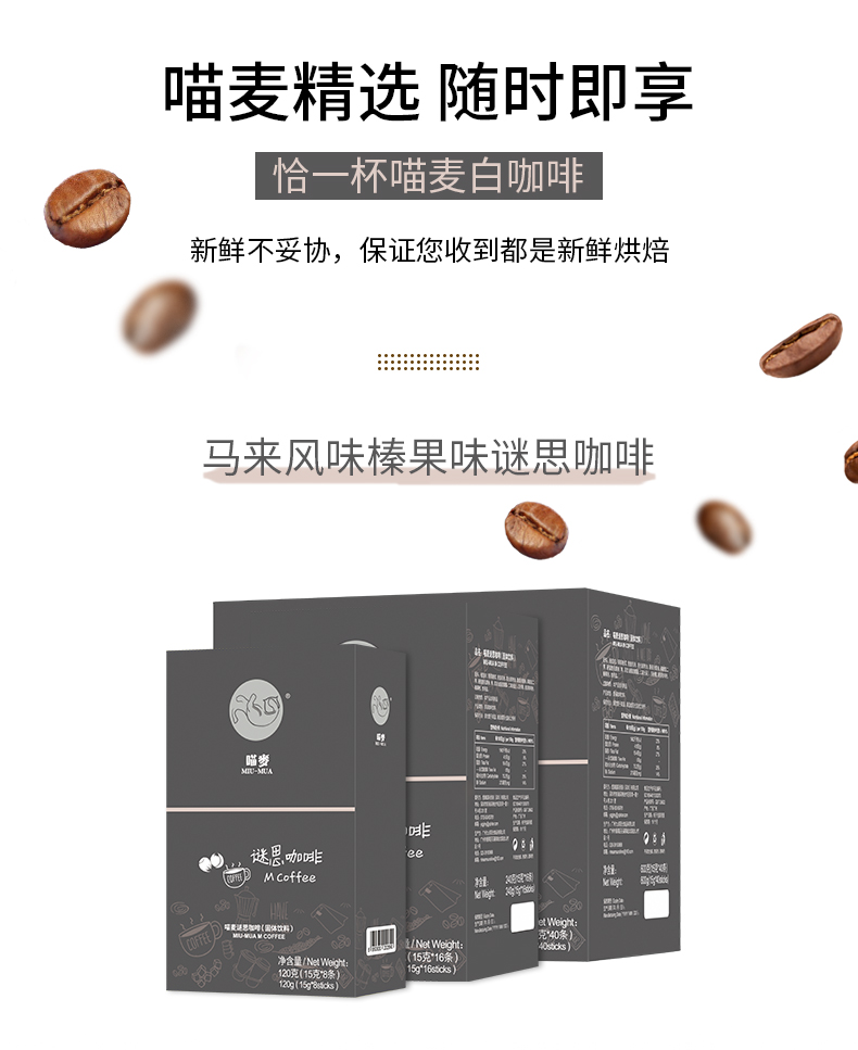 喵麦 马来西亚进口三合一榛果味谜思男士速溶白咖啡粉饮品8条盒装