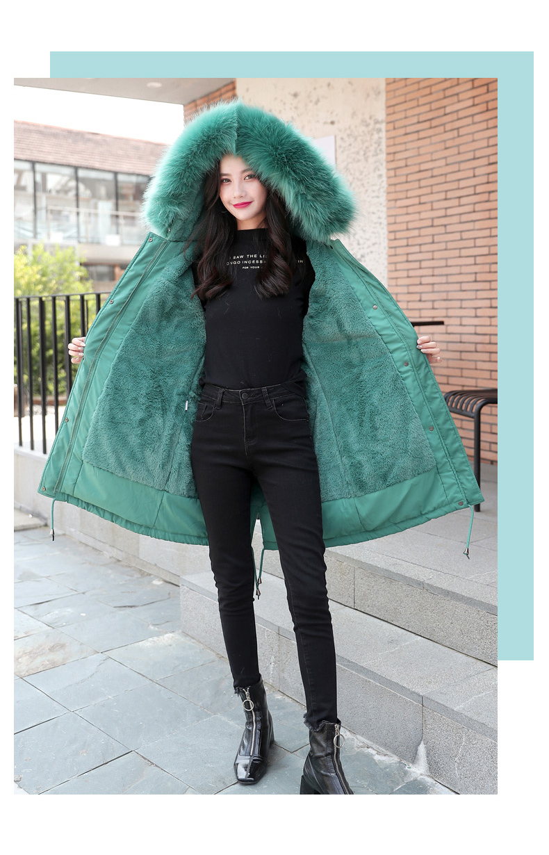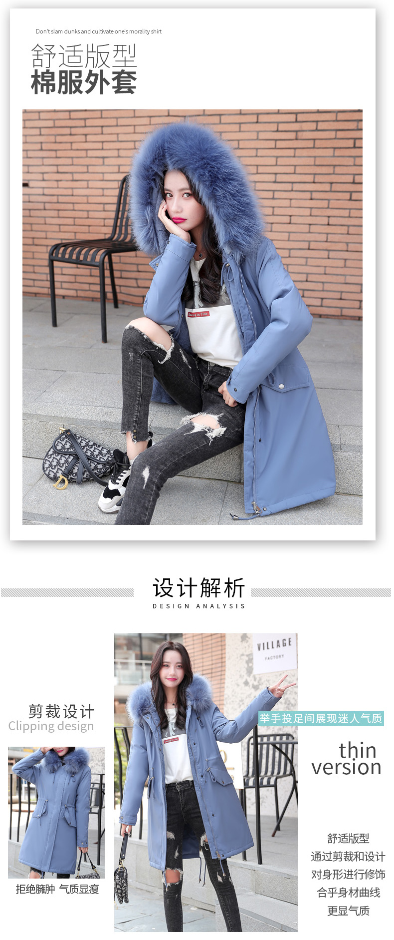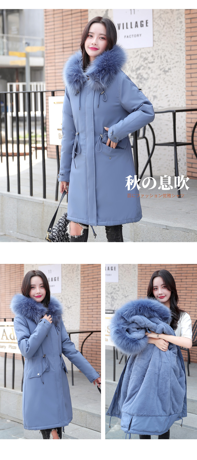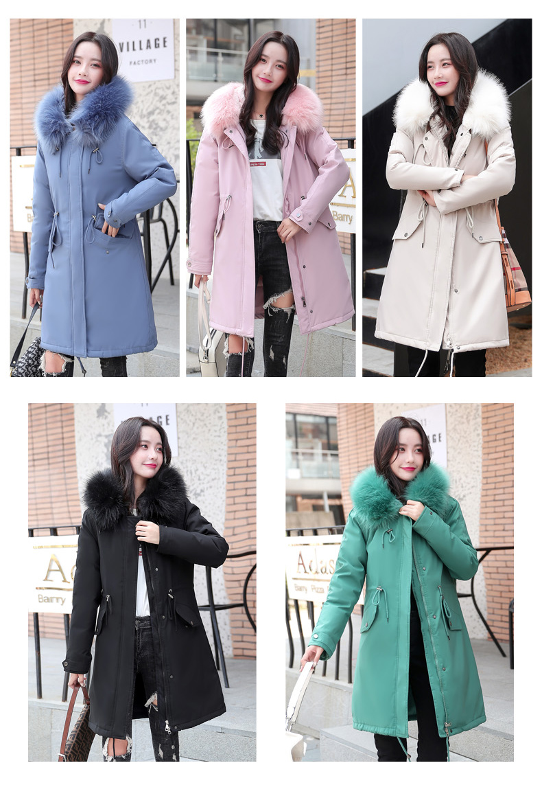 加绒棉衣女中长款2019新款冬季韩版宽松大码派克服大毛领棉袄外套