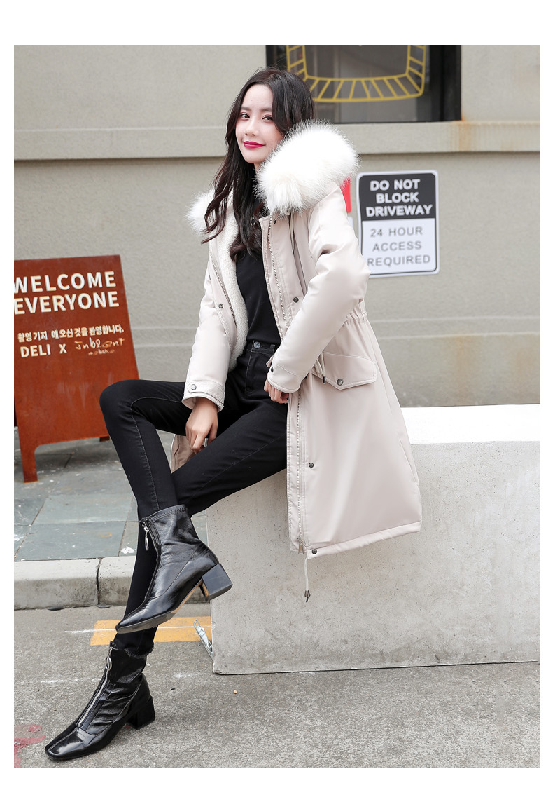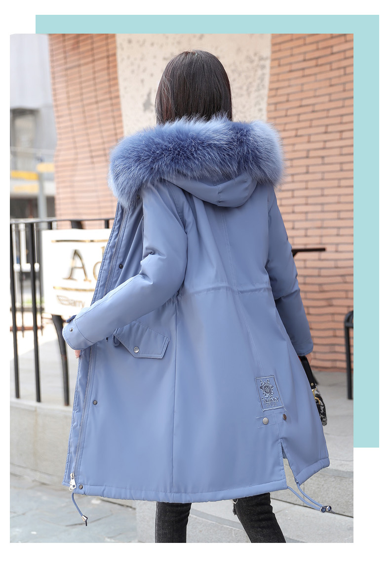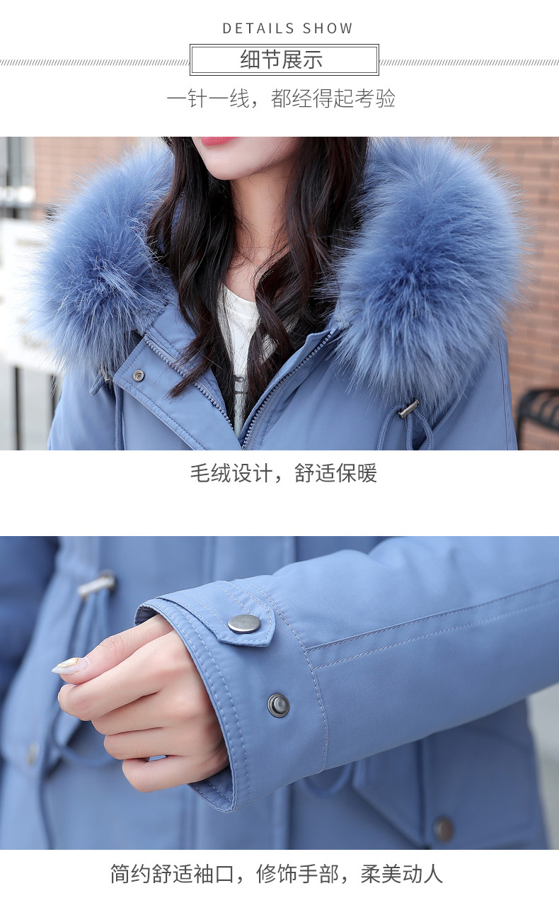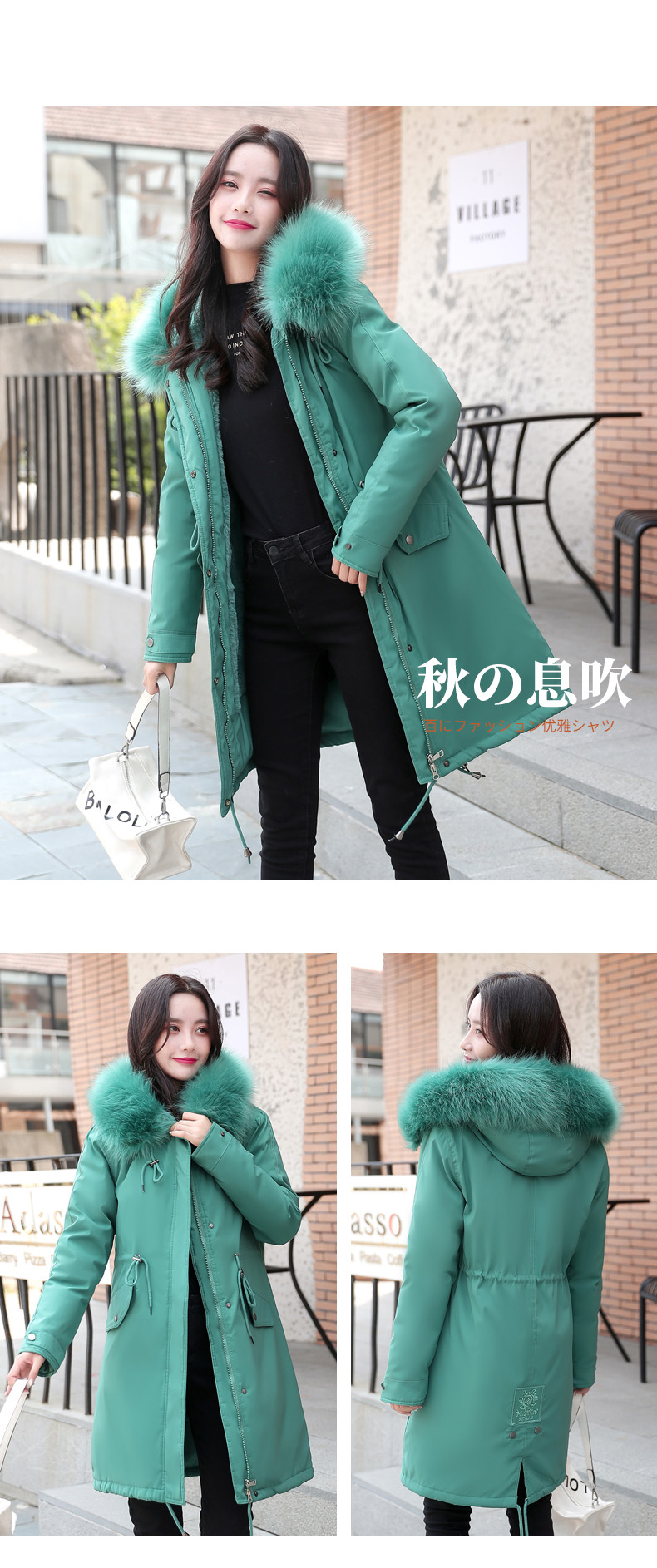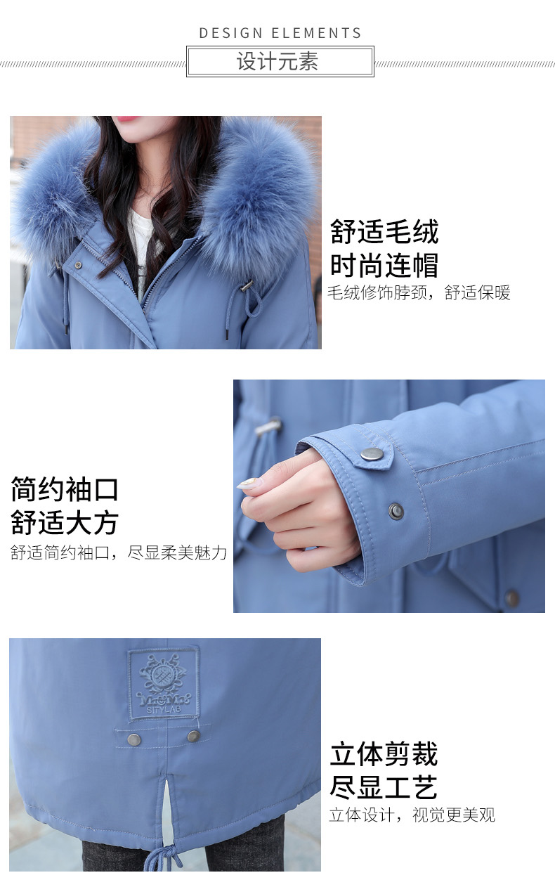 加绒棉衣女中长款2019新款冬季韩版宽松大码派克服大毛领棉袄外套