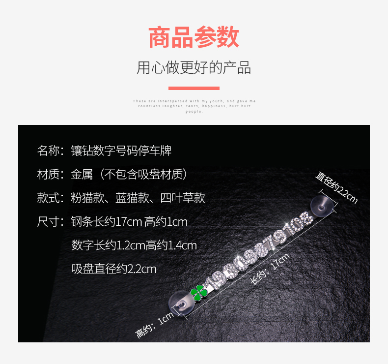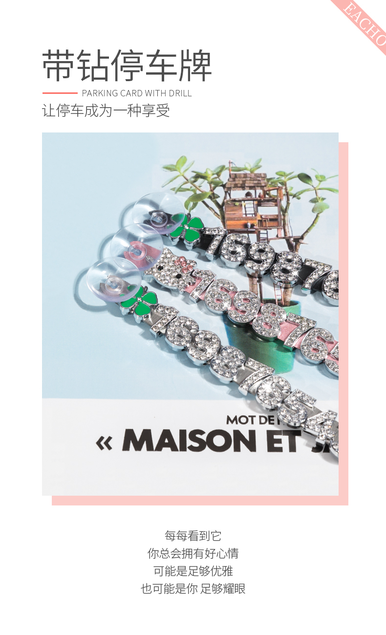 镶钻停车牌,夜晚透过车窗依然清新可见,不锈钢材质,立体镂空数字,轻松更换,做工精巧,美观大方,闪闪惹人爱,24小时安心停车,方便他人,停车无忧