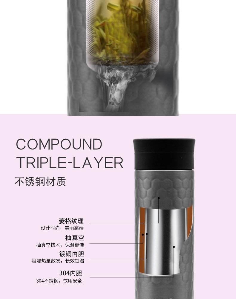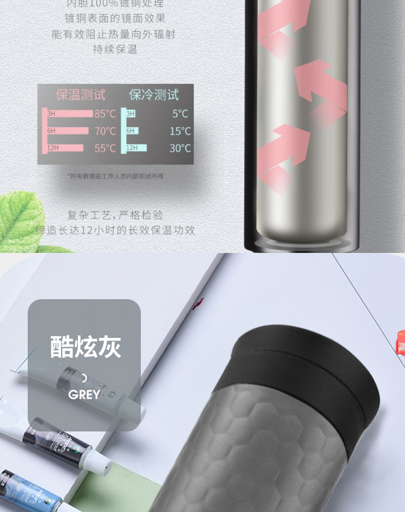 大牌专注,24小时l冷热长效保温,采用食品级304不锈钢,六层保护工艺,360度全方位立体防护无滴漏,真空保温层,珠光漆面。精心设计!