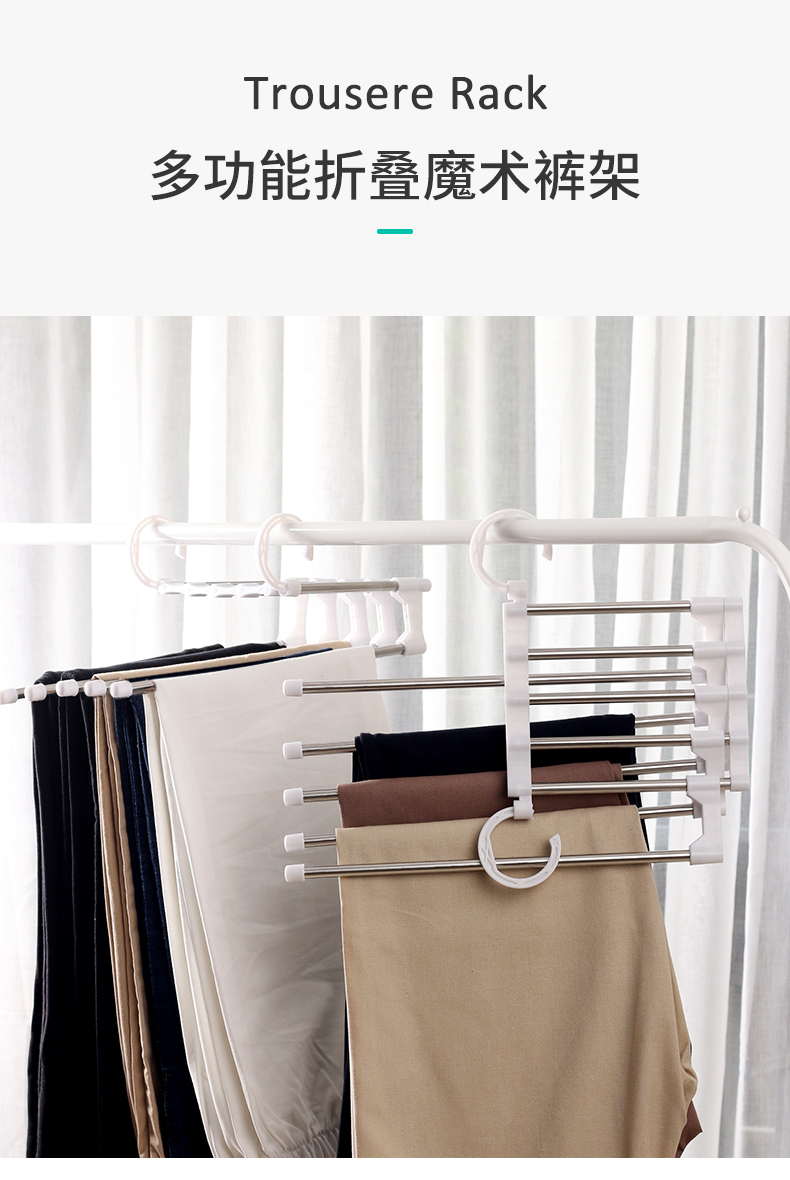 伸缩折叠多功能多层裤架裤子衣架家用魔术裤夹可收纳神器空间大师