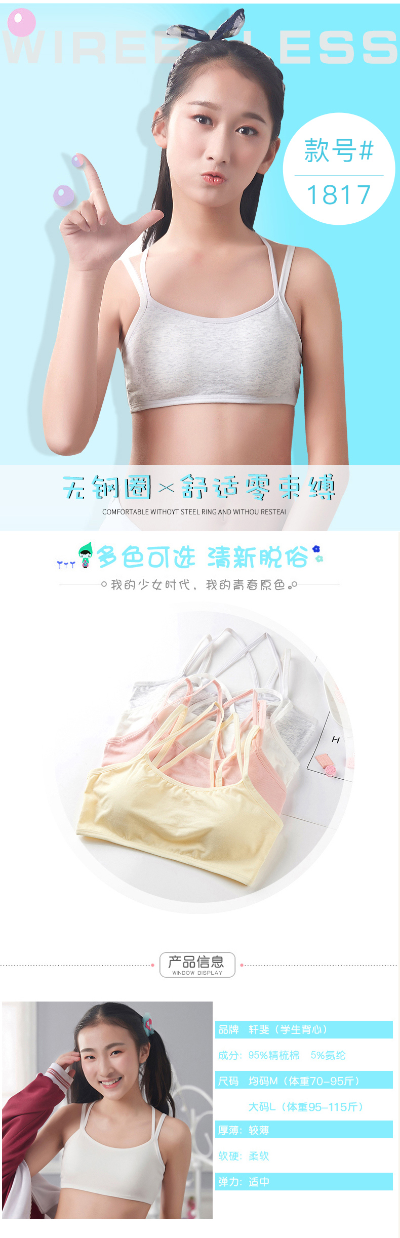发育期小背心初中高中学生12-14-16岁中大童文胸薄款少女夏季内衣