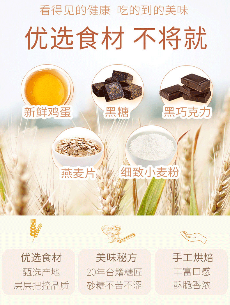 【拍三盒15.8】优选食材,新鲜鸡蛋,黑糖,巧克力,燕麦片,小麦粉,手工烘培,丰富口感,西式甜点融入中式糕点,老少皆宜,精致盒装【赠运费险】