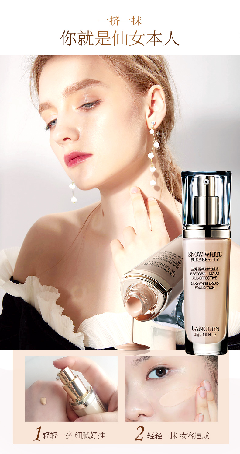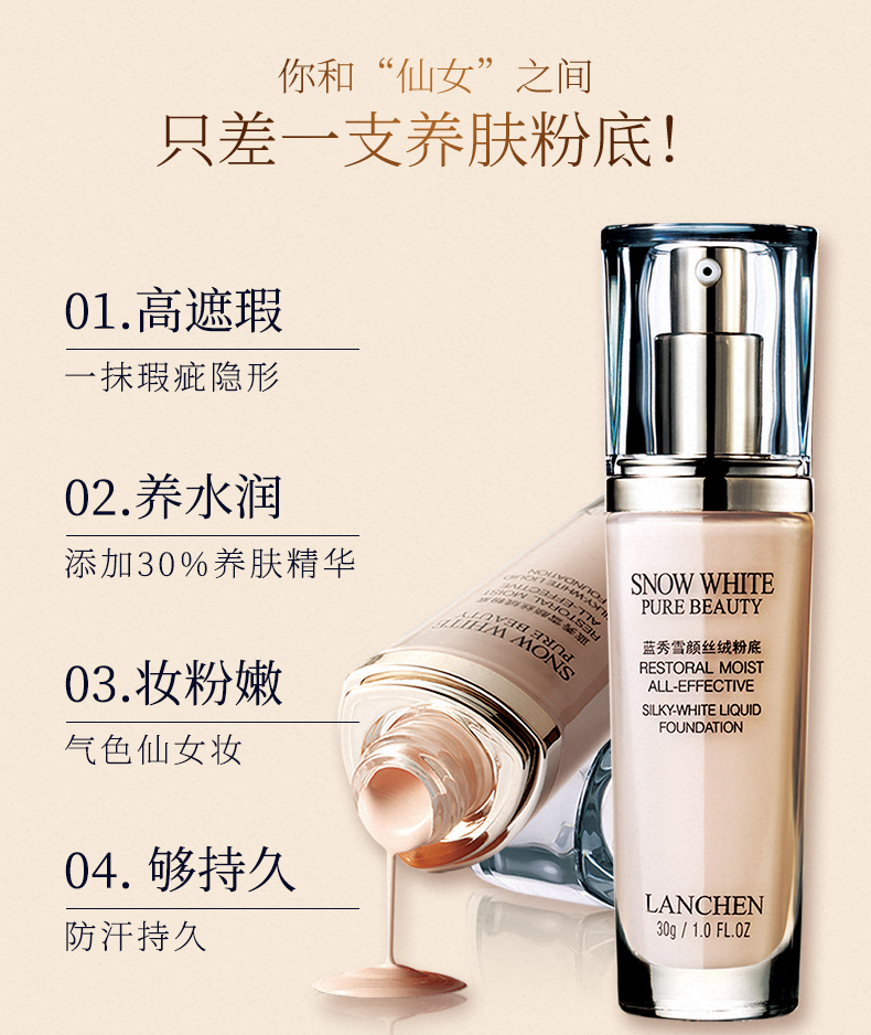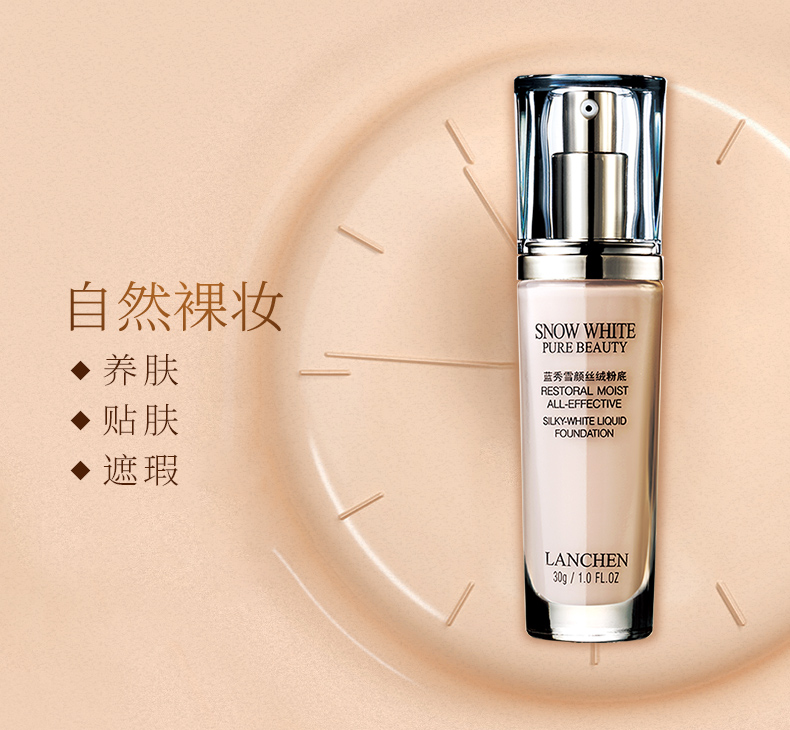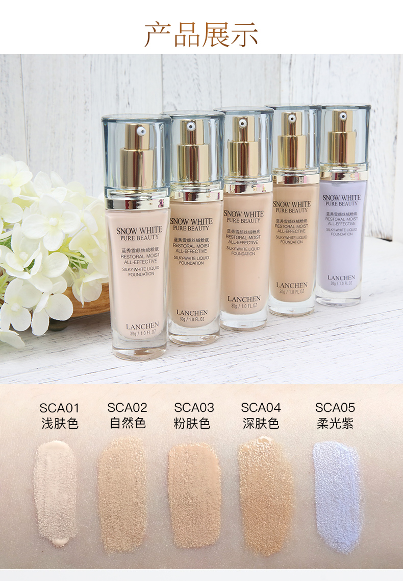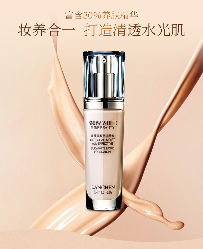蓝秀雪颜丝绒粉底液,5色可选,富含护肤精华,清爽滋养,轻裸遮瑕,水润服帖,嫩白无暇,清透自然,打造无遮瑕,成就女神气质!【赠运险费】