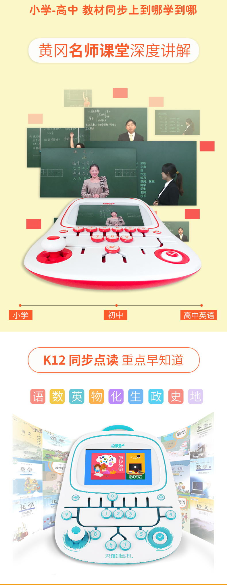 学习基础要打好,思维训练要趁早,两大核心思维训练系统,逻辑思维系统,海量题库,循序渐进,黄冈名师课堂深度讲解,同步点读课文重点早知道,支持WiFi联网,海量资源一应俱全~