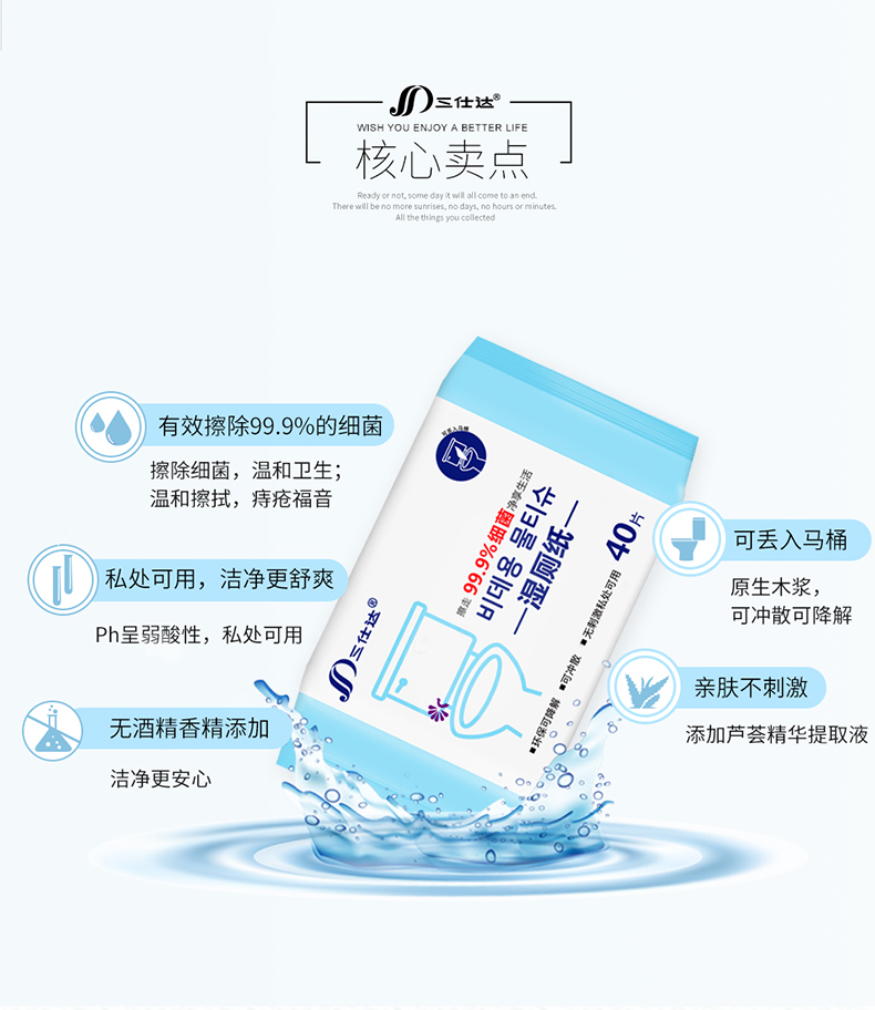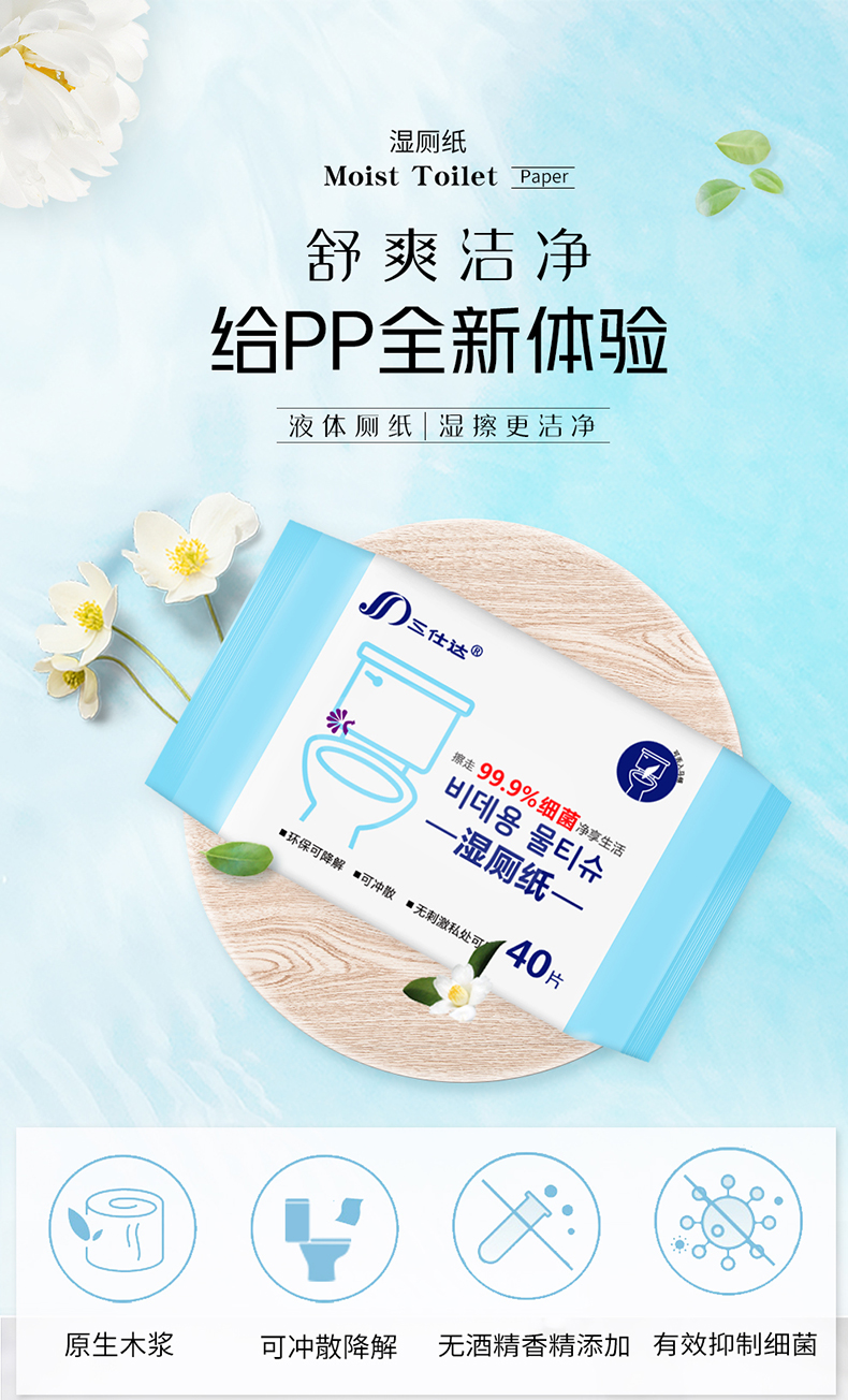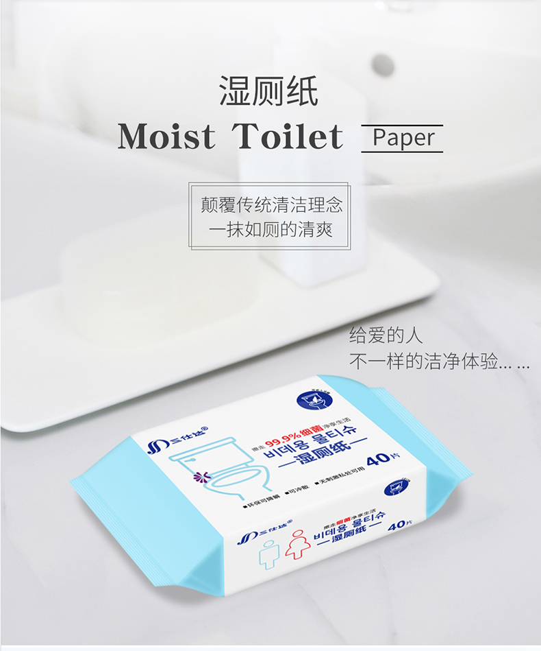 三仕达湿厕纸湿巾便后清洁房事私处护理湿纸抑菌液体手纸40片10包