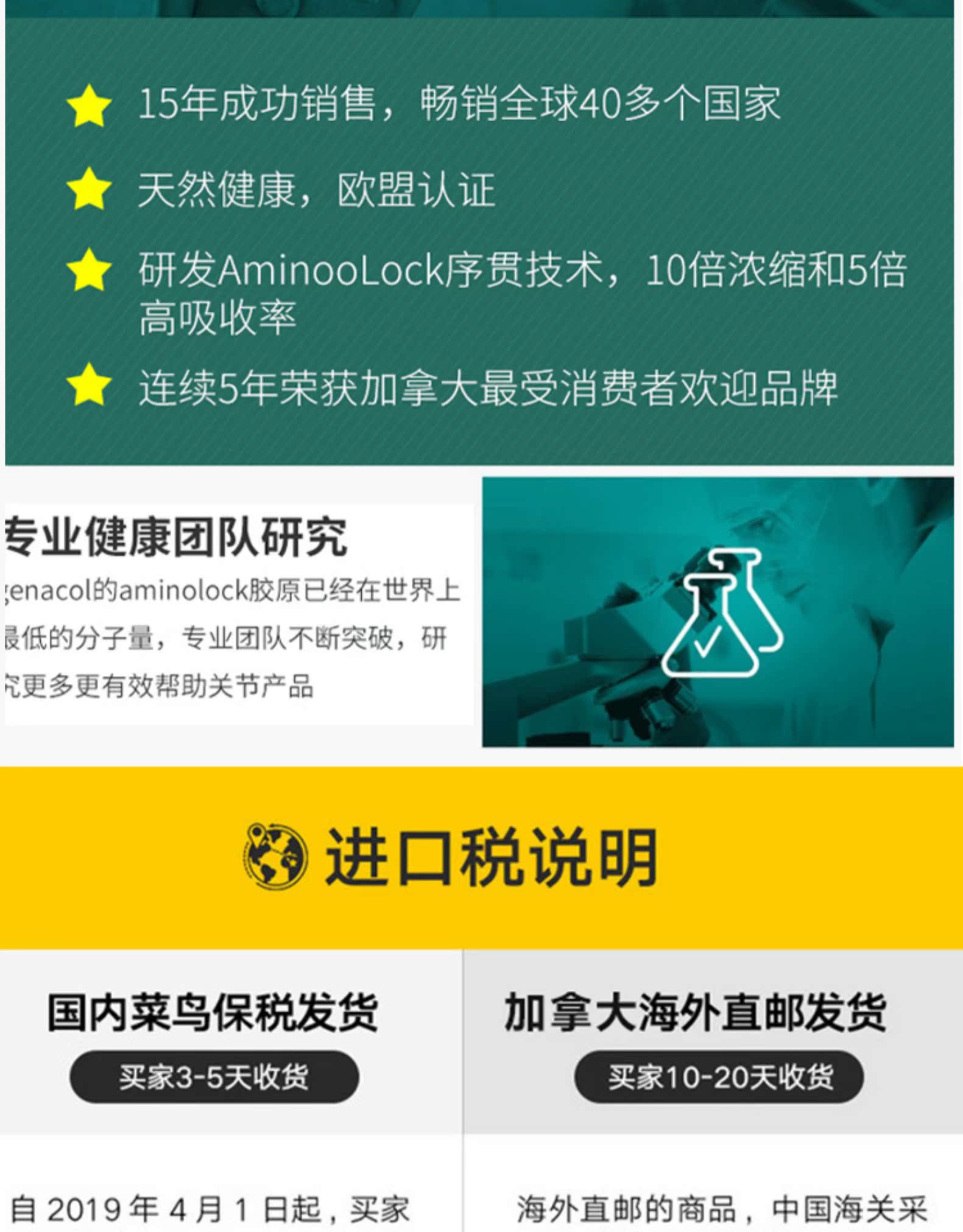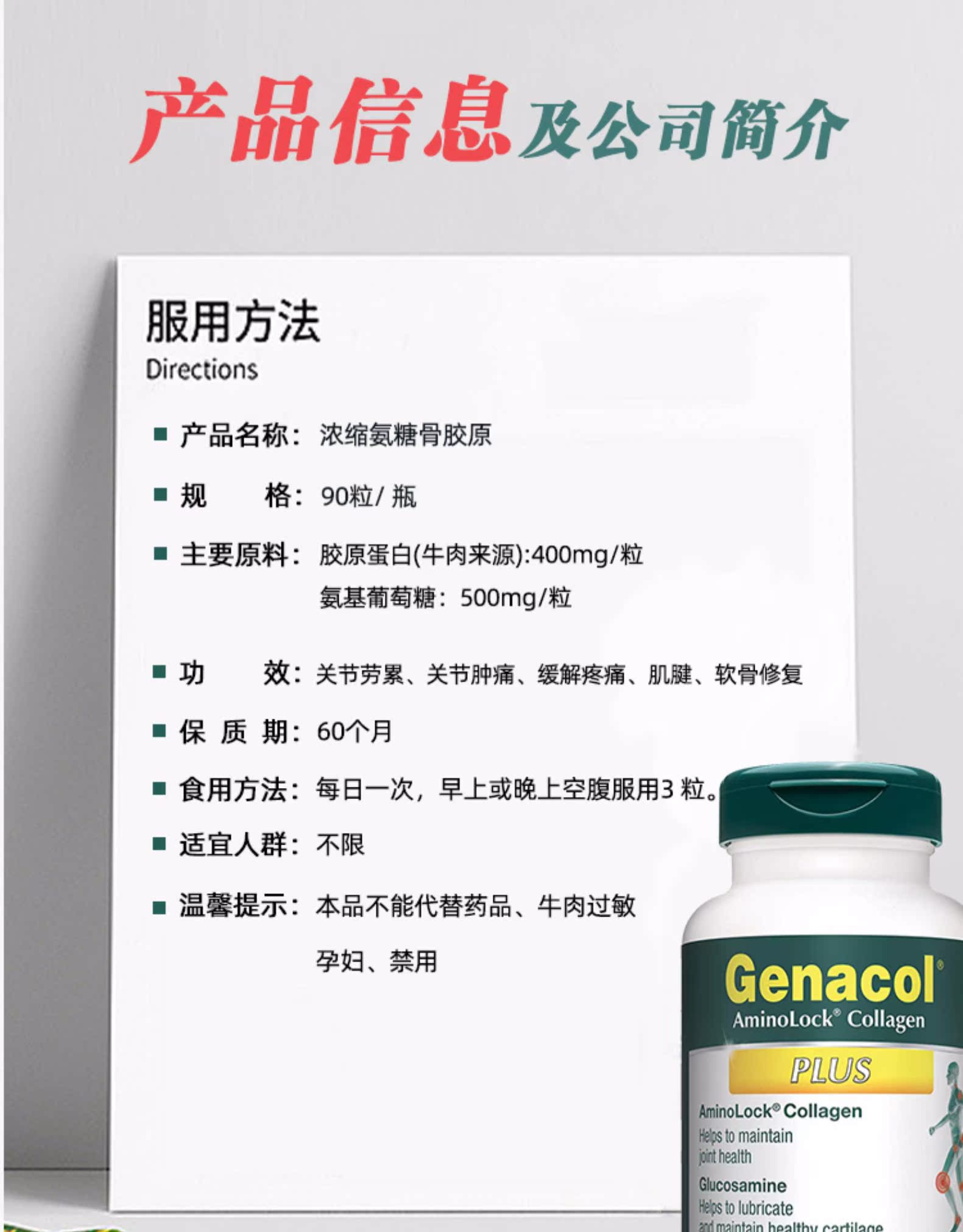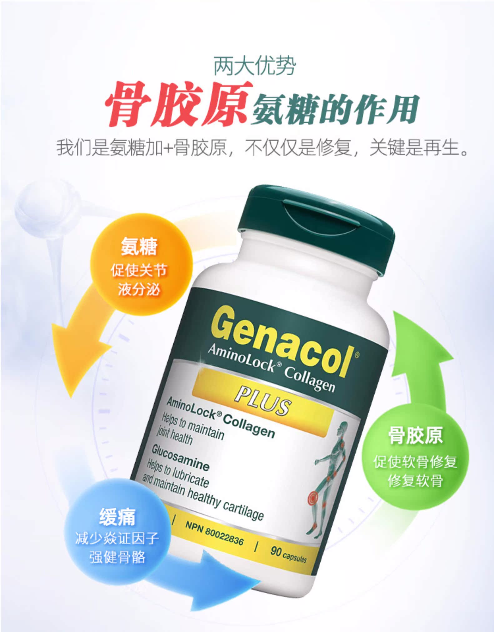 加拿大进口Geancol氨糖骨胶原蛋白肽骨维力PLUS 关节宝氨基葡萄糖