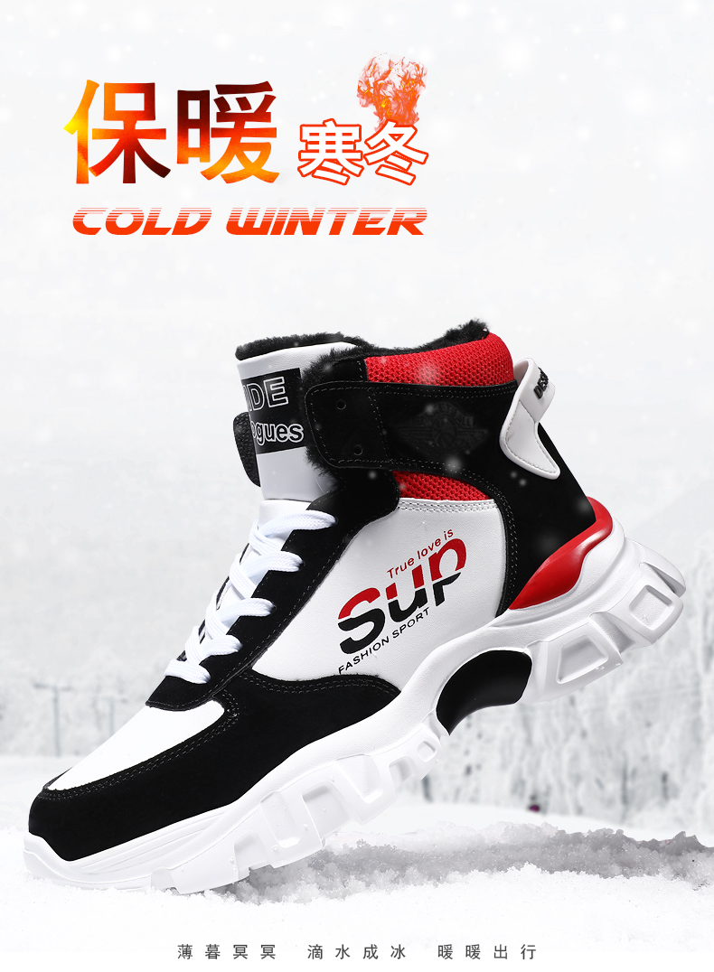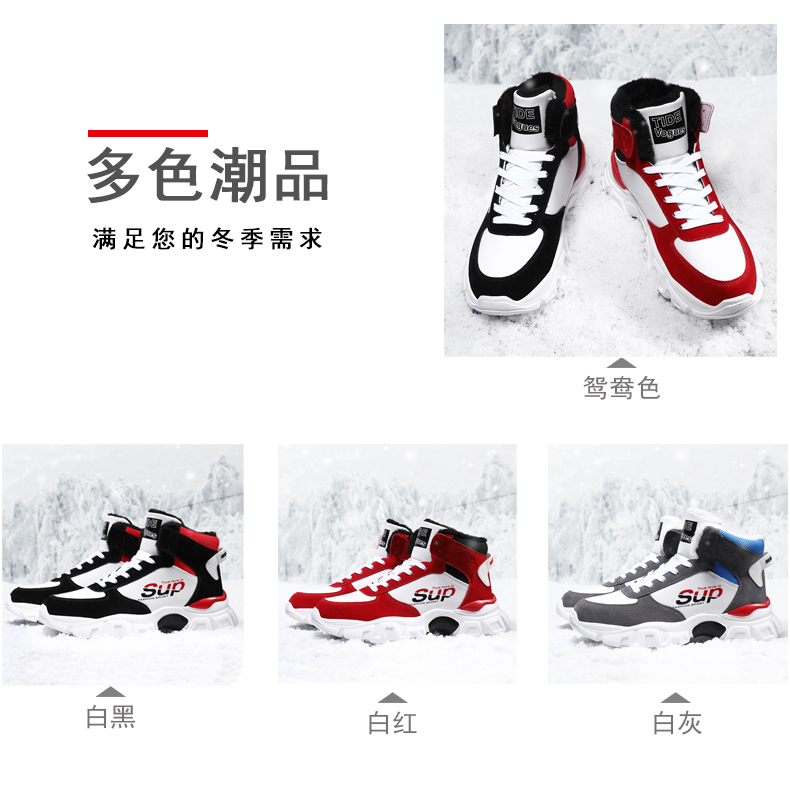 潮流韩版冬季男士高帮靴子,加绒防滑,休闲设计。为舒适而生,优雅韵味!不潮不罢休,穿上它,你走过的就是故事,男神鞋柜必备!