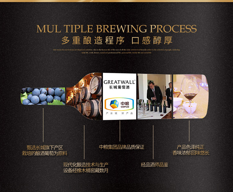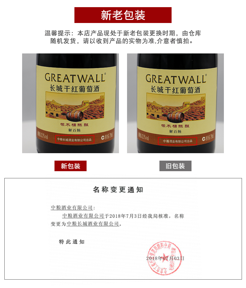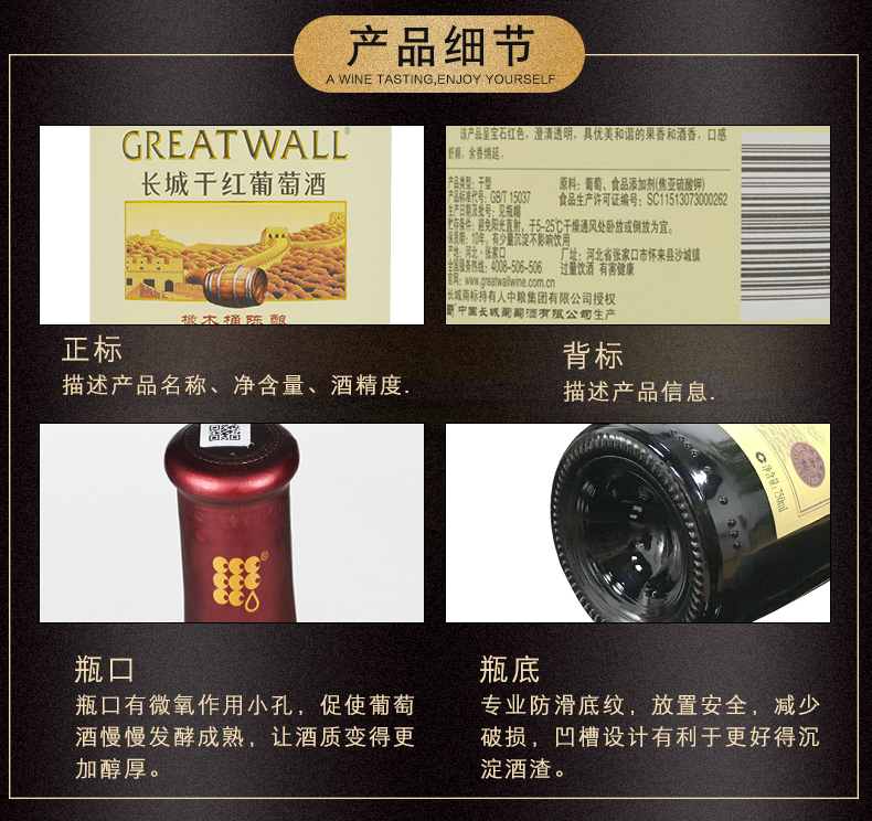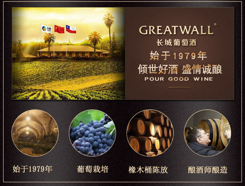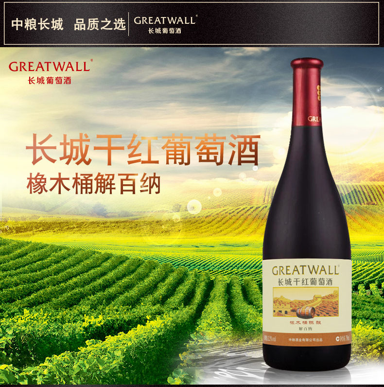 中粮长城干红葡萄酒橡木桶解百纳红酒整箱6支装 解百纳干红葡萄酒