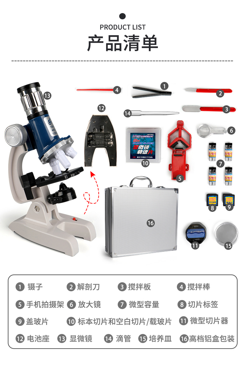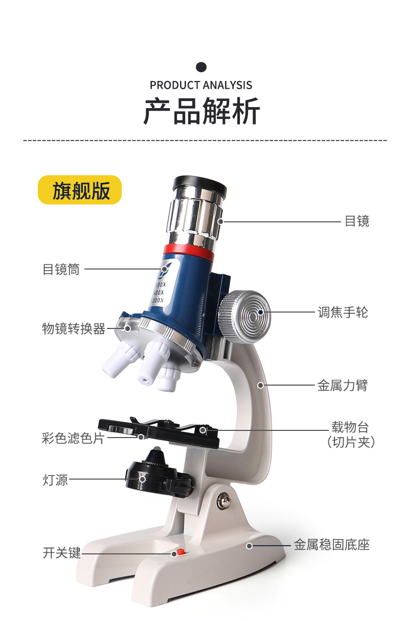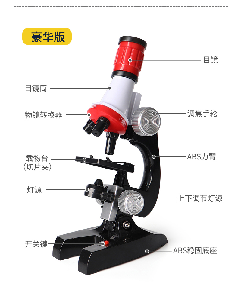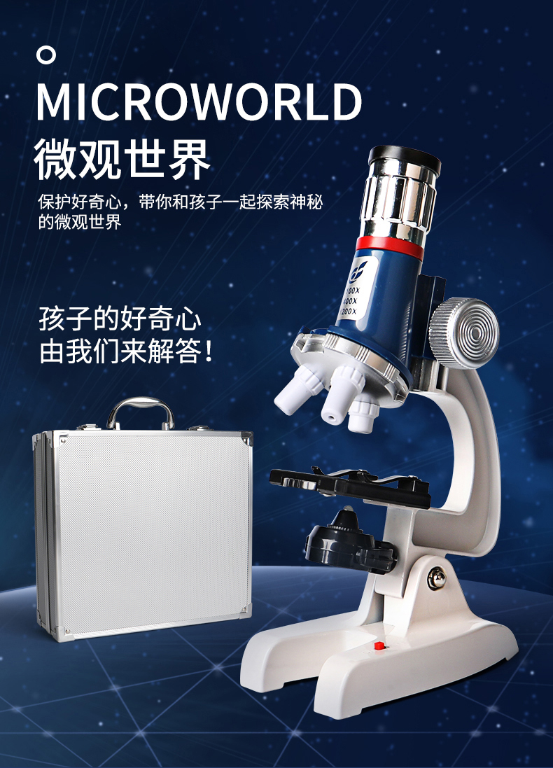专业显微镜儿童科学光学中小学生便携专用生物高清家用小实验套装