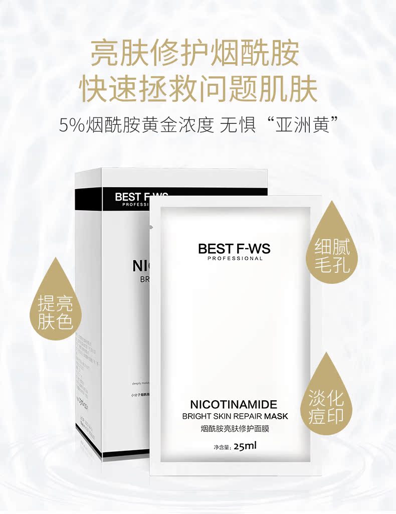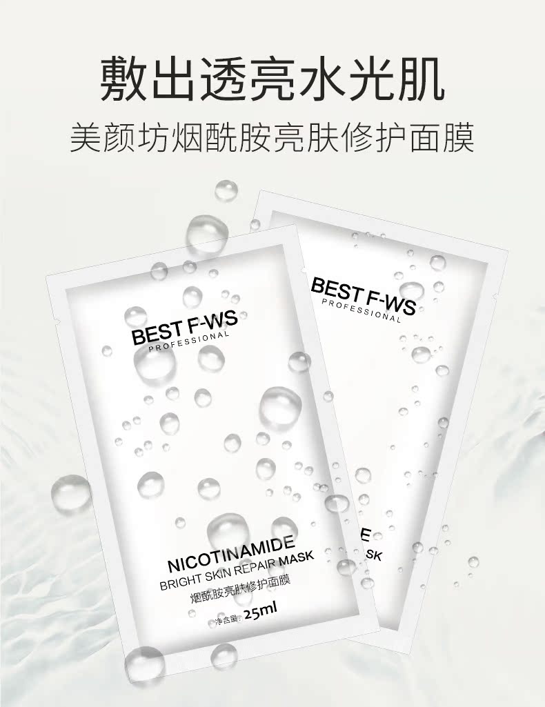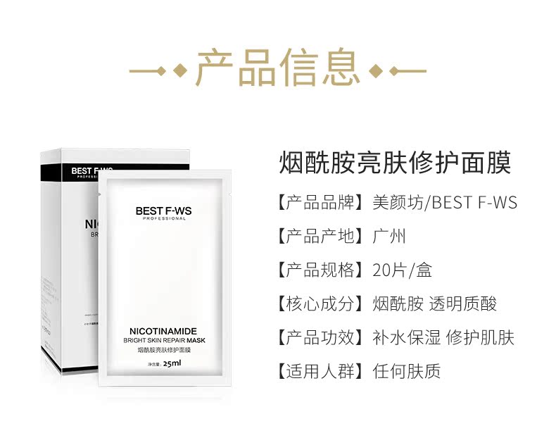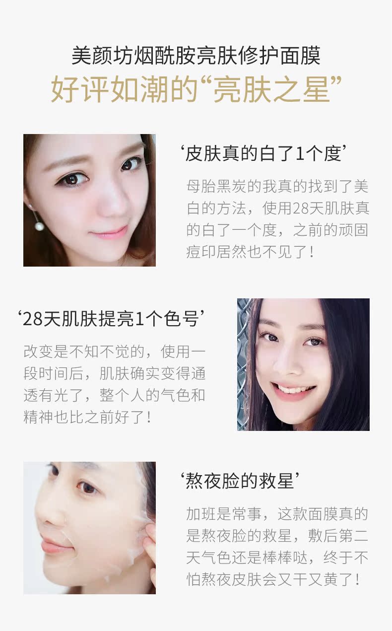 美颜坊烟酰胺亮肤修护面膜20片 补水保湿收缩毛孔男女敏感肌面膜