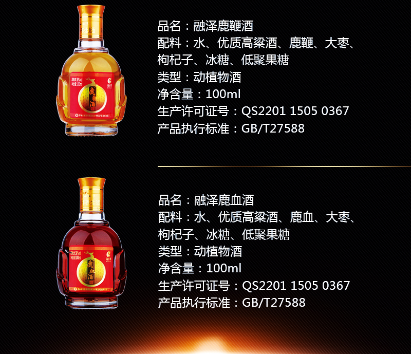 100ml*2瓶/融泽鹿血酒鹿鞭酒正品保健酒养生酒男性成人滋补养生酒