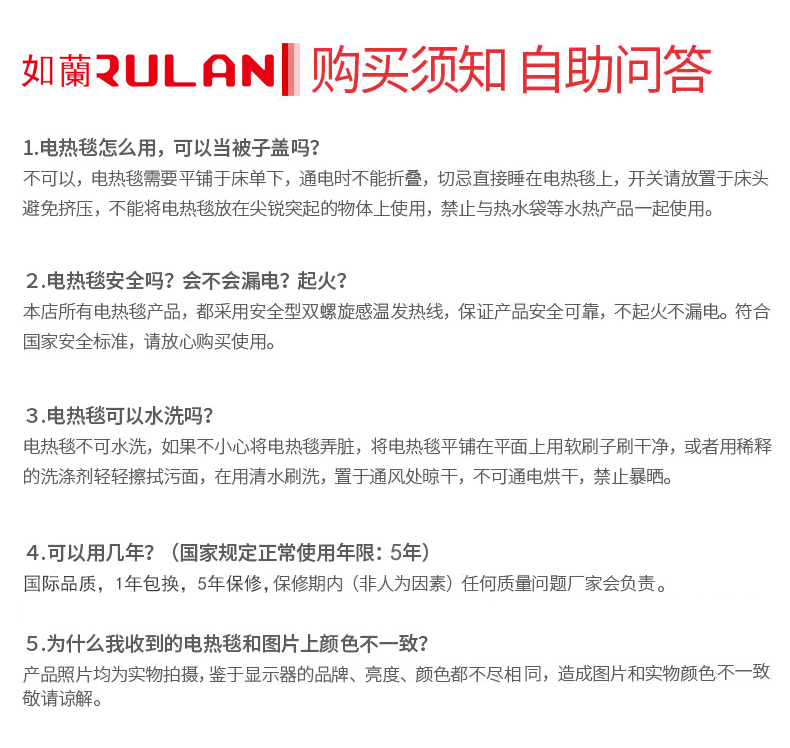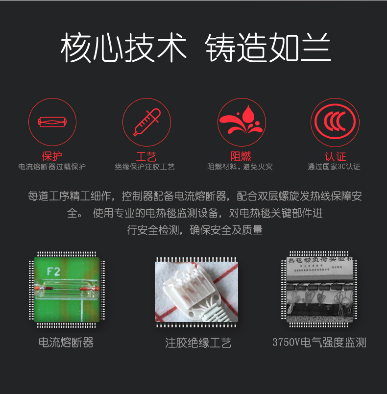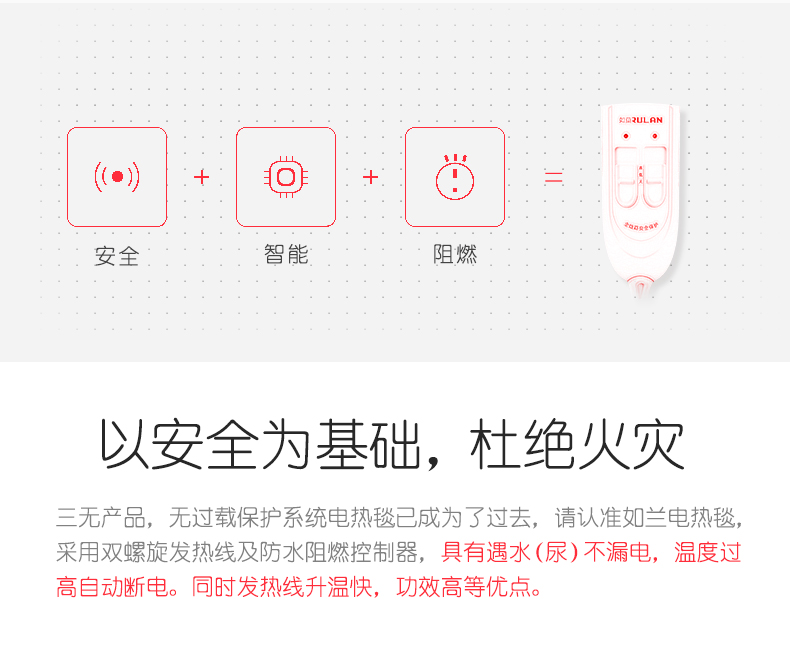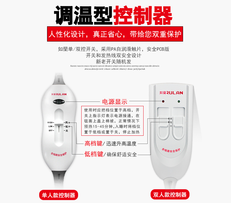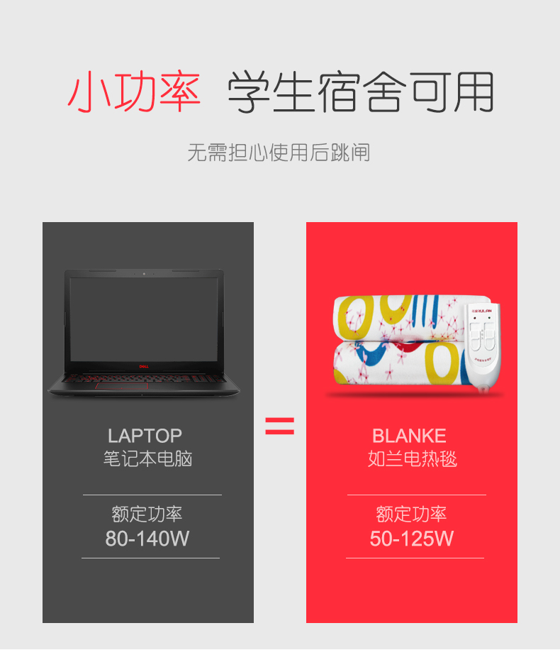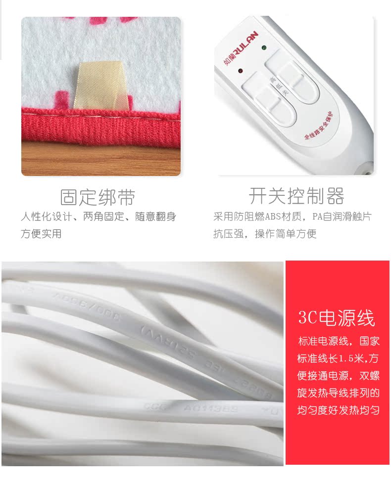 如兰电热毯双人双控单人小功率学生宿舍女安全家用加厚电褥子除潮