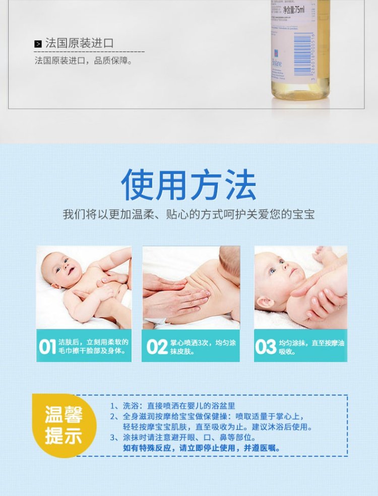 2件70】法贝儿婴儿按摩油抚触油呵护滋养 宝宝精油润肤护肤油75ml