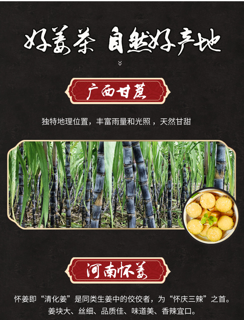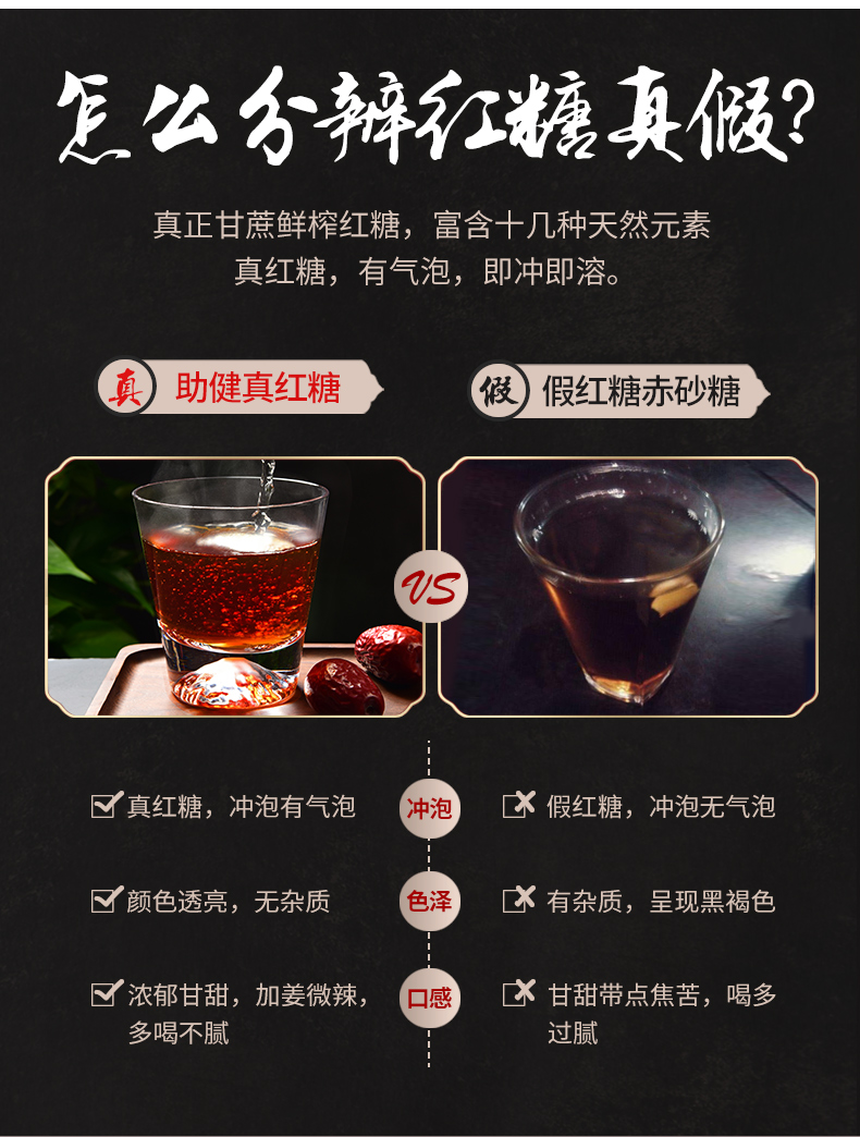 助健姜茶大姨妈红糖姜茶女经期调理姜汁红糖水黑糖100g颗粒小袋装