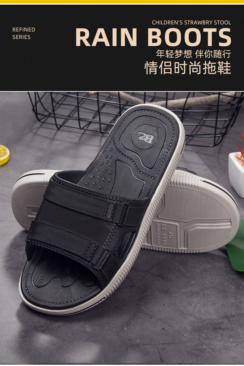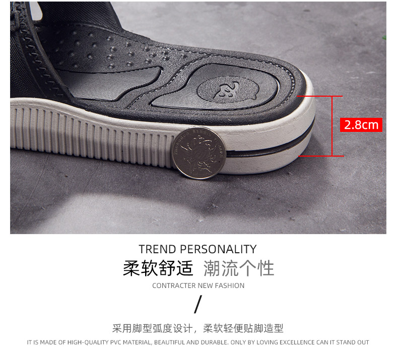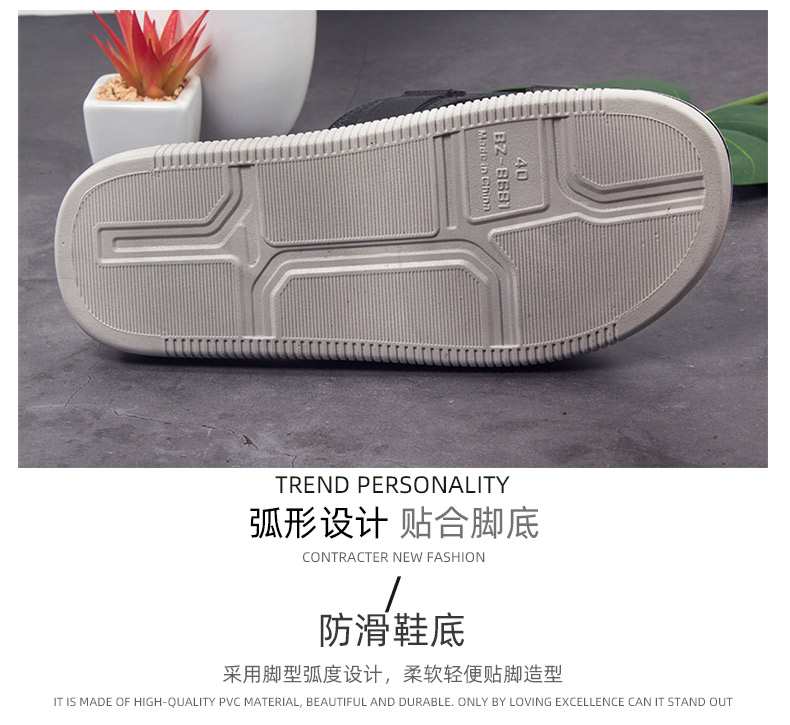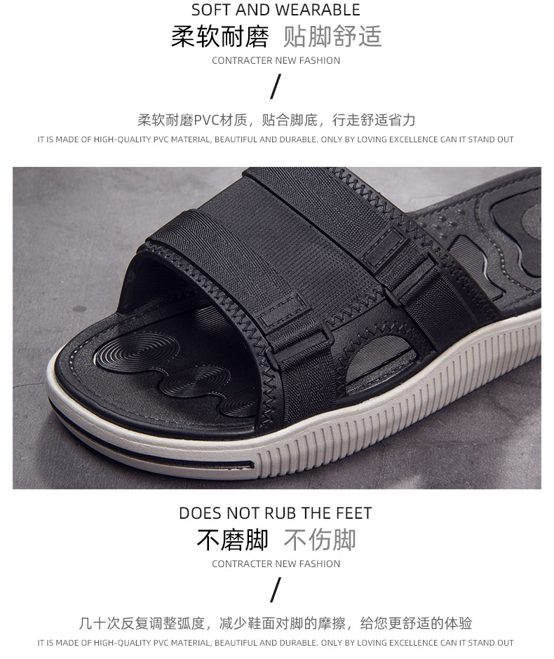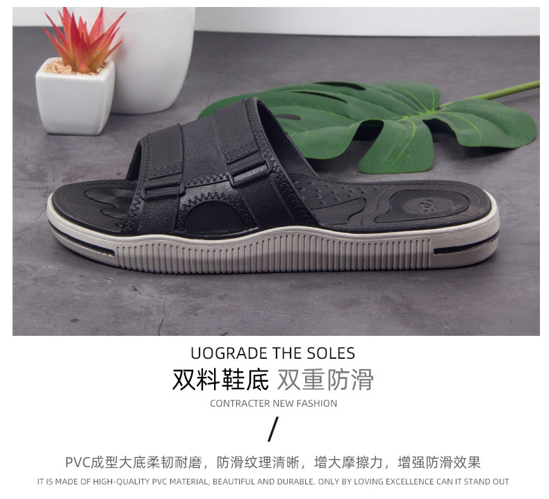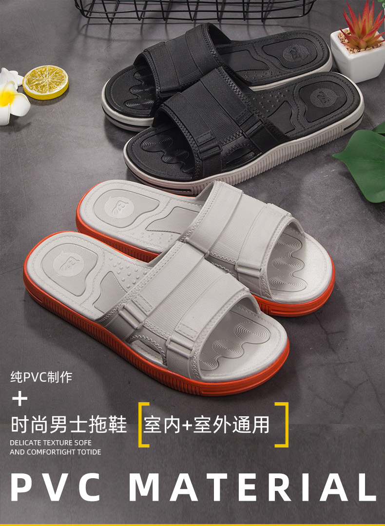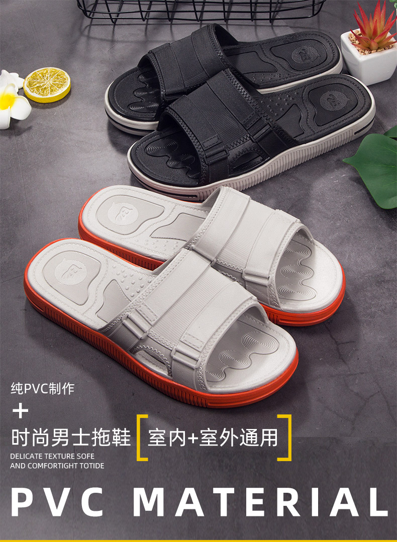 2019新品流行拖鞋男士休闲个性时尚,柔软耐折,经久耐穿,优选PVC新料,实心鞋底,厚度超过3公分用料足,上扬鞋头贴合脚底,韧性佳,不断裂,不变形