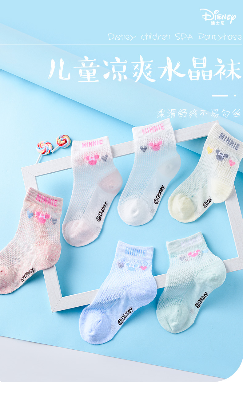 迪士尼儿童袜子男童,夏季薄款,非纯棉春秋,7-9岁女童3-5宝宝棉袜短袜,吸汗透气,不褪色,耐磨擦,迪士尼正品