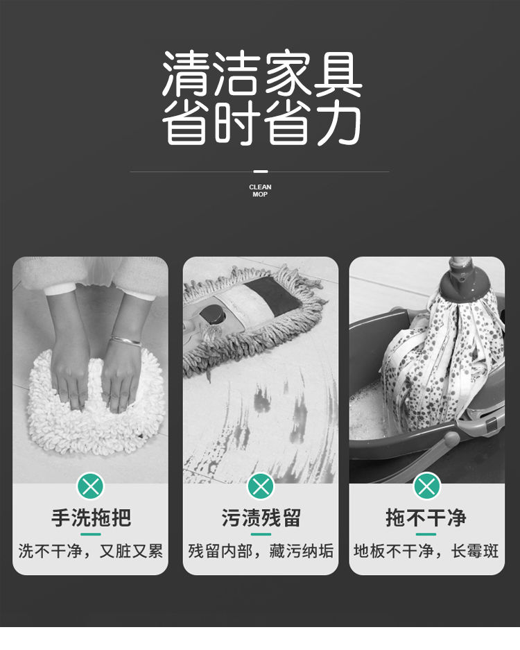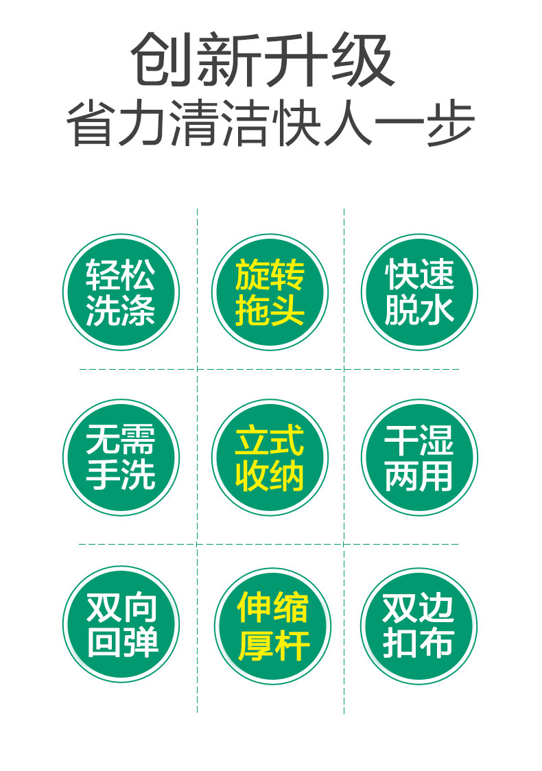 品牌新升级,轻巧灵动去污更彻底挤水更轻松,免手洗平板拖把,自滤清洁不脏手,360度旋转,免手洗,吸水性强,告别手洗,去除油腻,解放双手。