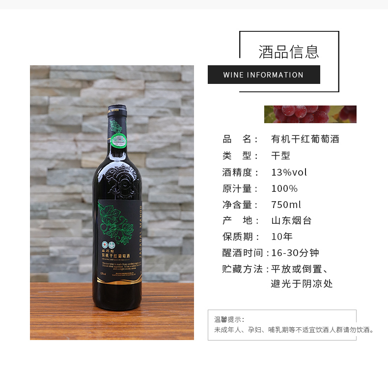 【有机红酒】杜瑞特有机干红葡萄酒,没有经过任何化学物质处理,使用传统工艺,自然发酵,口感饱满丰富。自饮、商务、宴请、送礼佳选,口感好!【赠运费险】