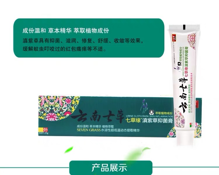 云南七草缘滇紫草抑菌膏,用于清洁后的肌肤,植物精华萃取,缓解皮肤不适,宝宝止痒、虫咬、红屁股、护臀,哪里不适抹哪里,购物无忧,不满意,随时退