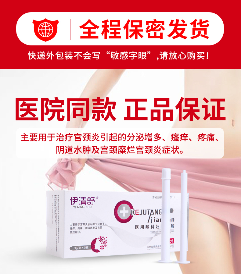 伊清舒医用凝胶宫颈糜烂妇科炎症栓剂瘙痒白带多黄有异味同房疼痛