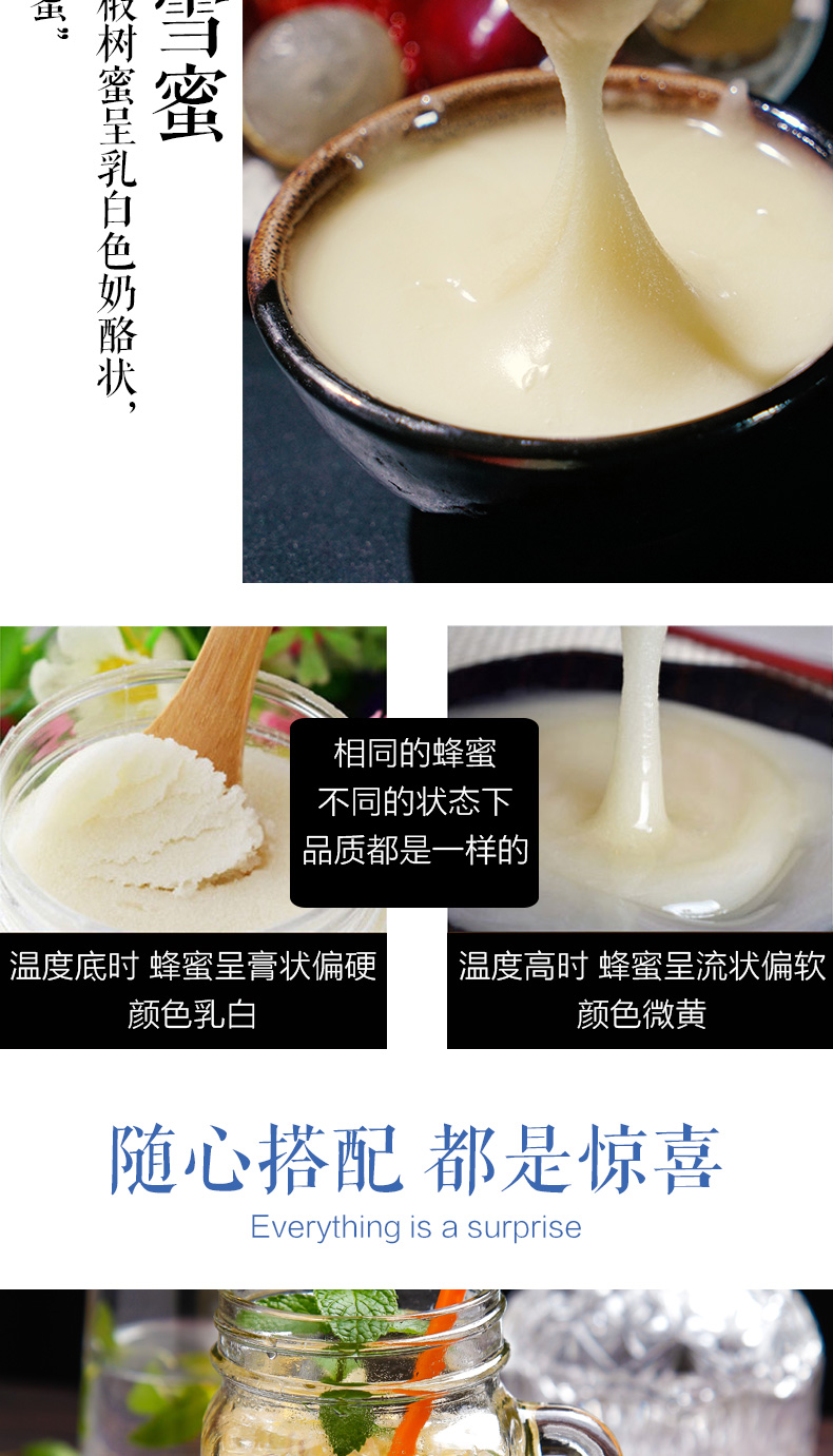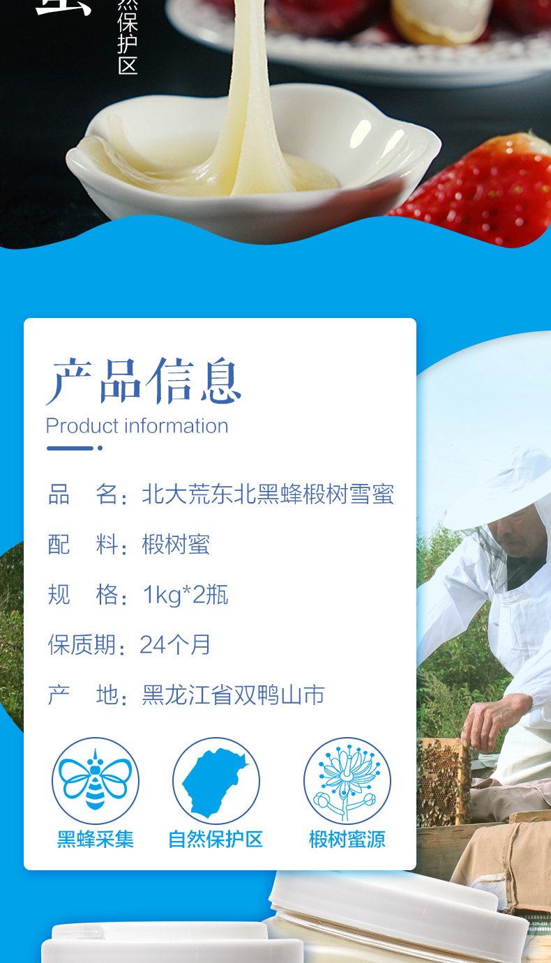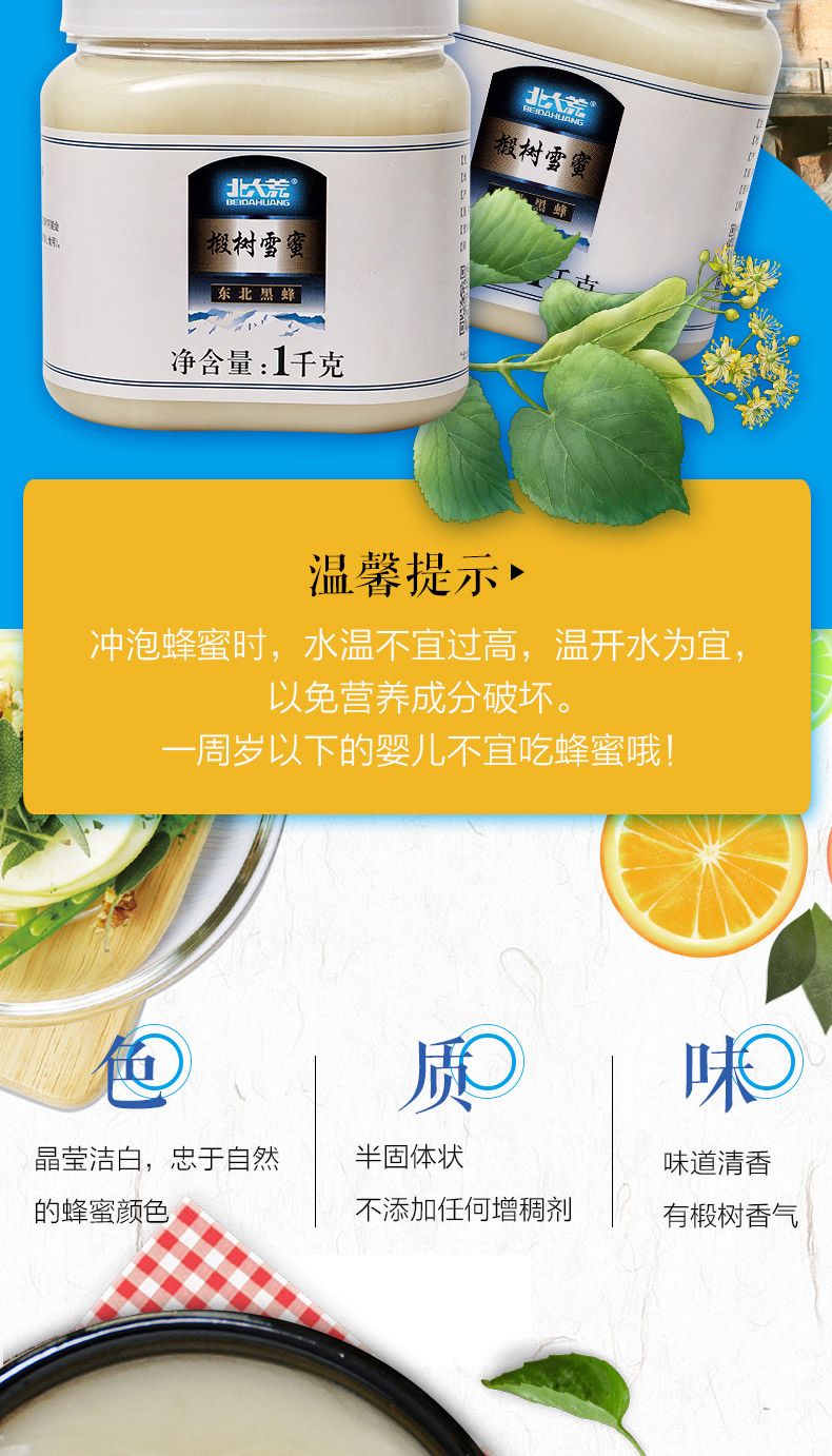 【超值!天猫4.9超高评分】北大荒自然蜂蜜,色晶莹洁白,忠于自然,质半固体状,不调价任何增稠剂,味道清香,有椴树香气。