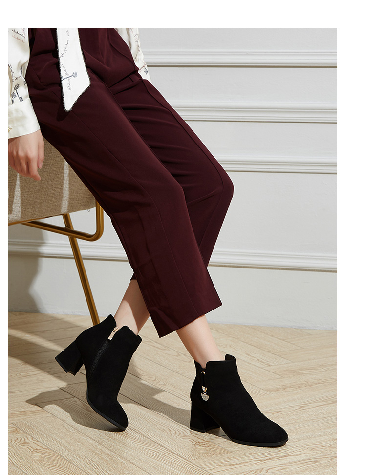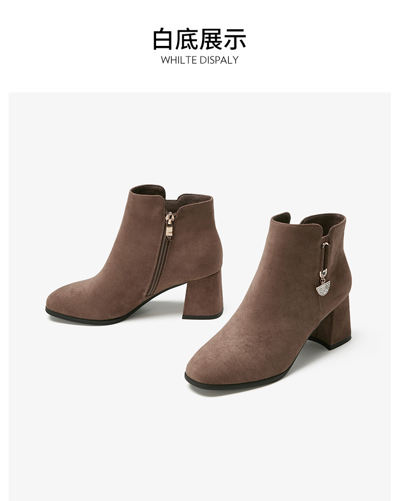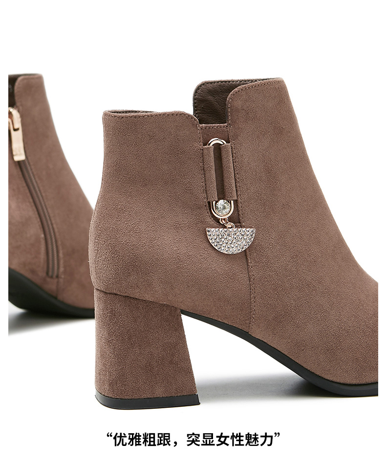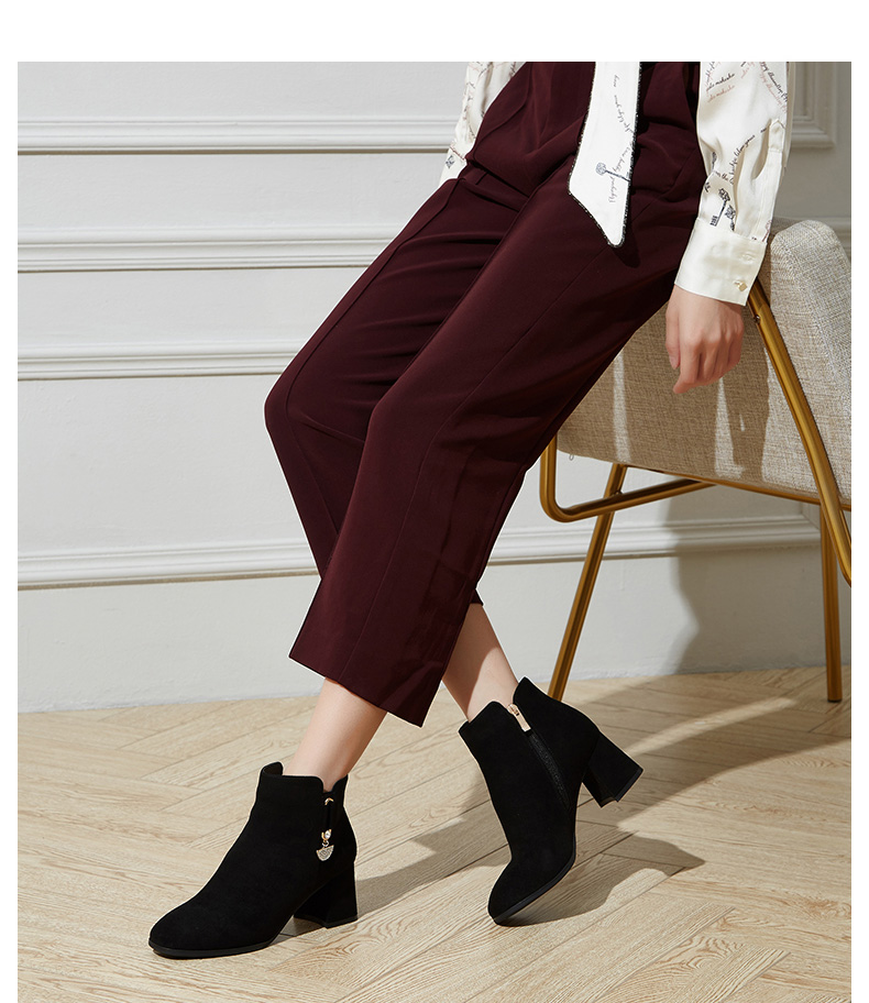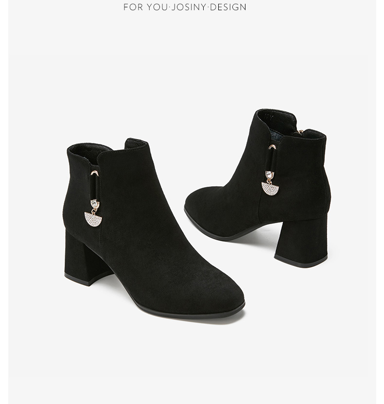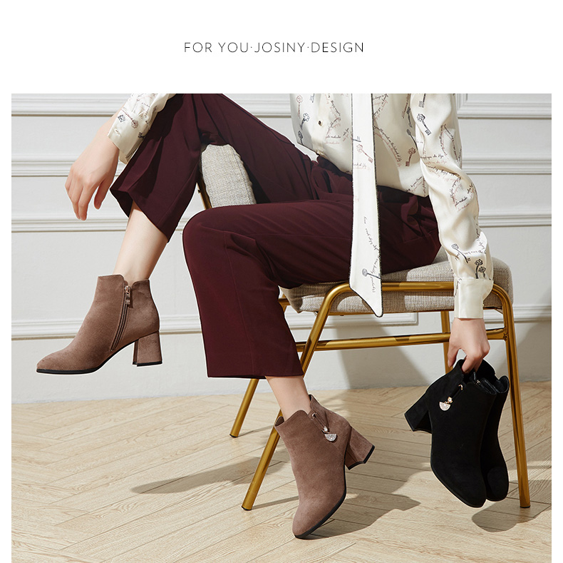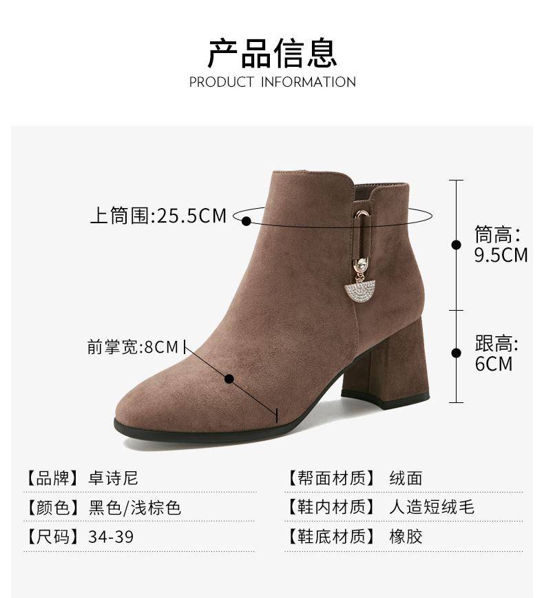 卓诗尼2019冬季新款女靴时尚百搭时装靴休闲方头通勤高跟短筒靴子